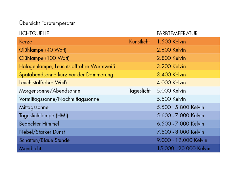 ► LICHTFARBE: WELCHE FARBTEMPERATUR ENTSPRICHT WELCHER LICHTQUELLE?