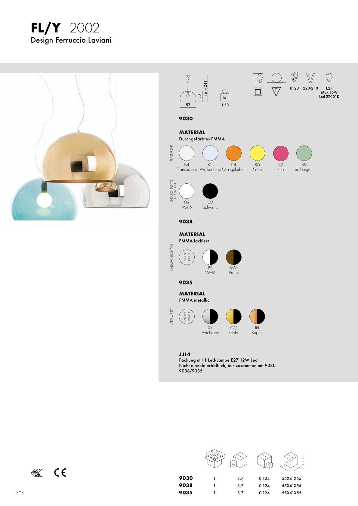 | Ausführungen | Alternativ sind die kleinere Leuchte Small FL/Y, die klassische FL/Y Leuchte oder die größere Leuchte BIG FL/Y erhältlich. |