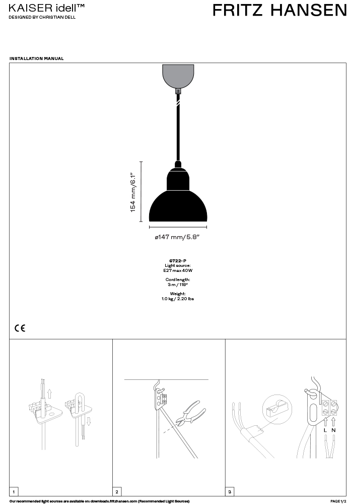 | Zertifikate | Schutzart IP20 Schutzklasse I Alle Kaiser Idell Leuchten haben die CE-Kennzeichnung, was bedeutet, dass sie die EU-Sicherheits-, Gesundheits- und Umweltschutzanforderungen (wie Wee und RoHS) erfüllen. |