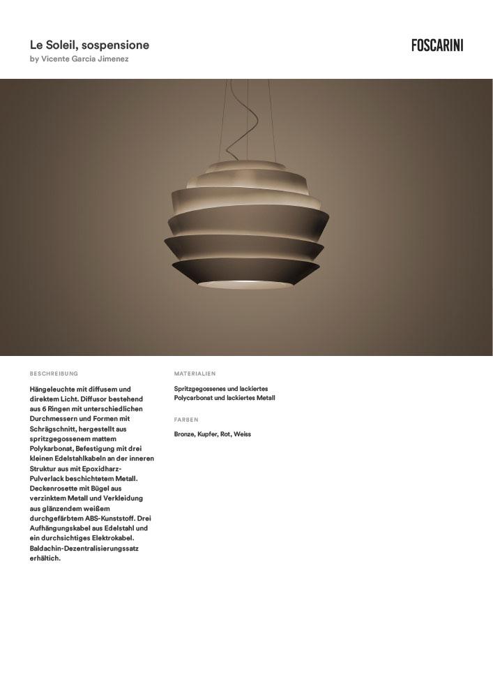 | Ausführungen | Auch als Le Soleil Sospensione erhältlich. |