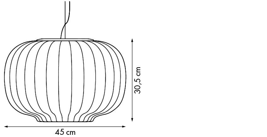 | Material | Schirm: strukturiertes Papier Metallgitter: Aluminium, pulverbeschichtet Ring: Eichenholz, dunkel geölt Zuleitung: Kunststoff, transparent |