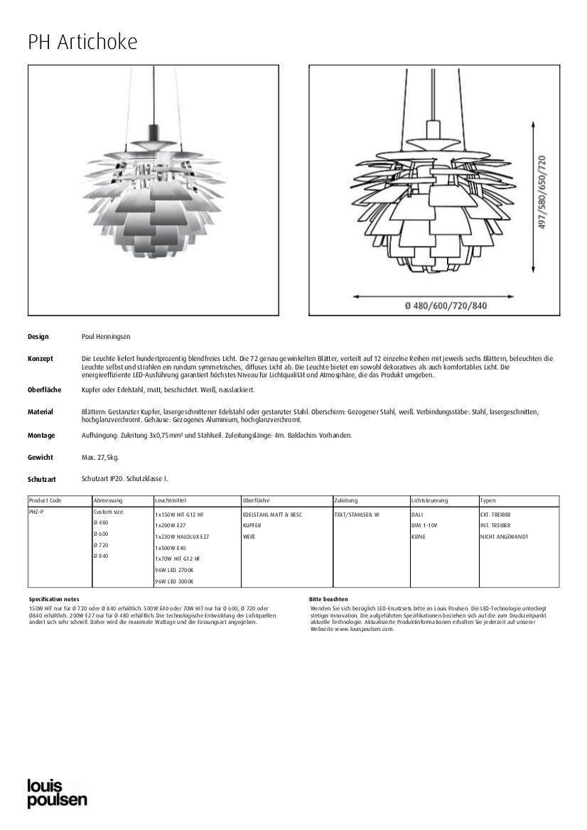 | Lieferumfang | 1 Artichoke Leuchte bestehend aus 72 Blättern Leuchtmittel sind nicht im Lieferumfang enthalten. |