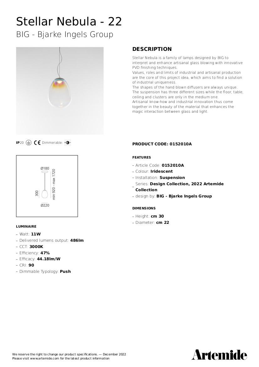 Der irisierende Leuchtenschirm der Stellar Nebula von Artemide verbreitet einen zauberhaften und je nach Perspektive wechselnden, leichten Farbschimmer. Inspiriert ist die Artemide Pendelleuchte dem Namen nach von dem faszinierenden Schauspiel eines Sternennebels. Die Designer von BIG, der Bjarke Ingels Group, verbinden dabei die traditionelle Glasbläserei mit modernem, angenehm einhüllenden LED-Licht.
