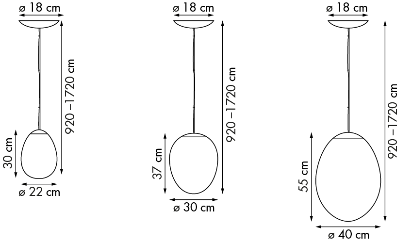 | Funktion & Eigenschaften | Dimmbar per Push-Technologie Ø 22 cm: 11 Watt LED / 3000K / 486lm Ø 30 cm: 20 Watt LED / 3000K / 1890lm Ø 40 cm: 28 Watt LED / 3000K / 2536lm |