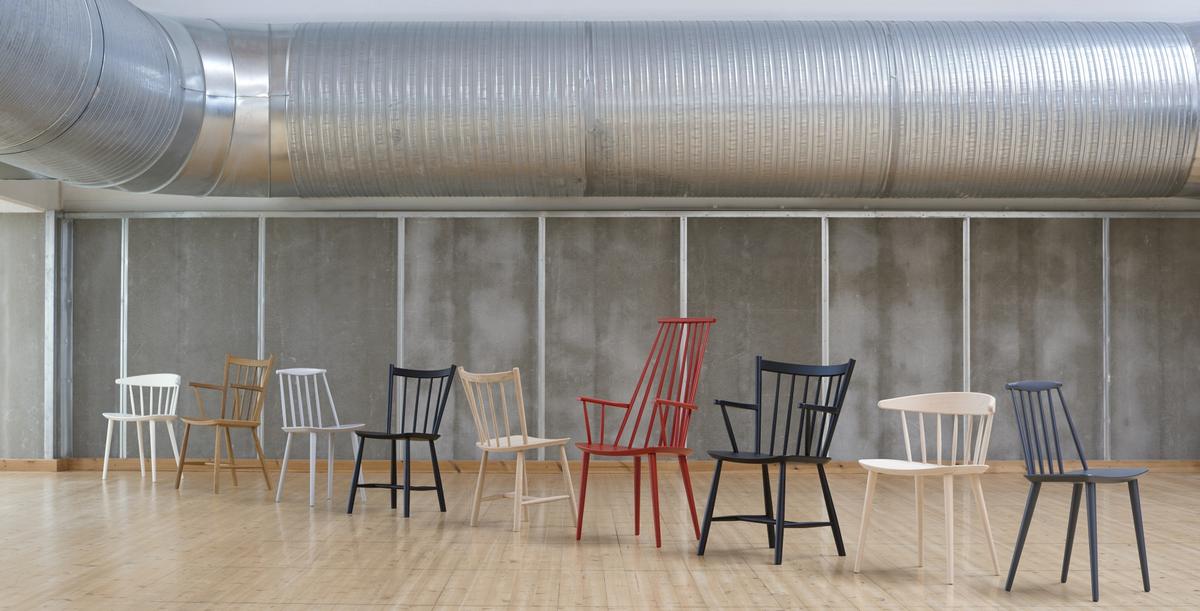 Die sogenannte J Kollektion des dänischen Herstellers Hay umfasst eine Reihe von Neuauflagen dänischer Designklassiker: Holzstühle, die während der 60er Jahre von verschiedenen Designern im Kontext des sogenannten Verbandes dänischer Konsumgenossenschaften (FBD) entstanden sind und die ihre Nähe zum klassischen Windsor Stuhl eint.