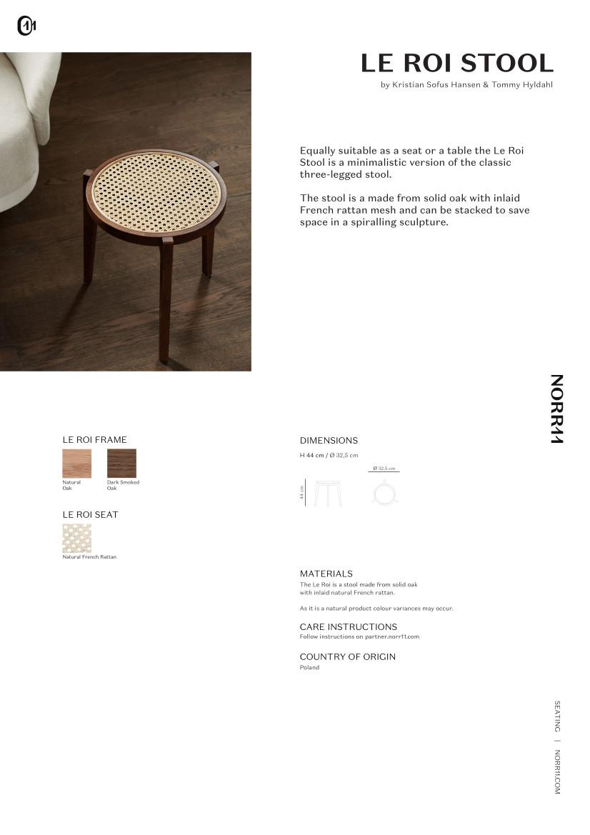 Der Le Roi Stool von Norr11 verbindet Modernes mit Vertrautem: Inspiriert vom klassischen skandinavischen Dreibeinhocker der 60er und 70er Jahre wird der “königliche” Hocker von Kristian Sofus Hansen und Tommy Hyldahl mit seinem französischen Naturrattan zum stilvollen Hingucker.