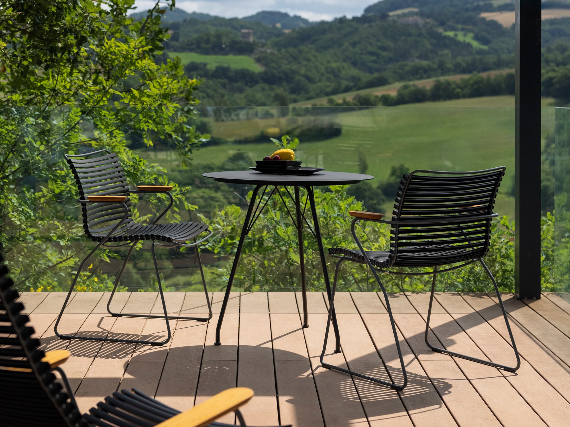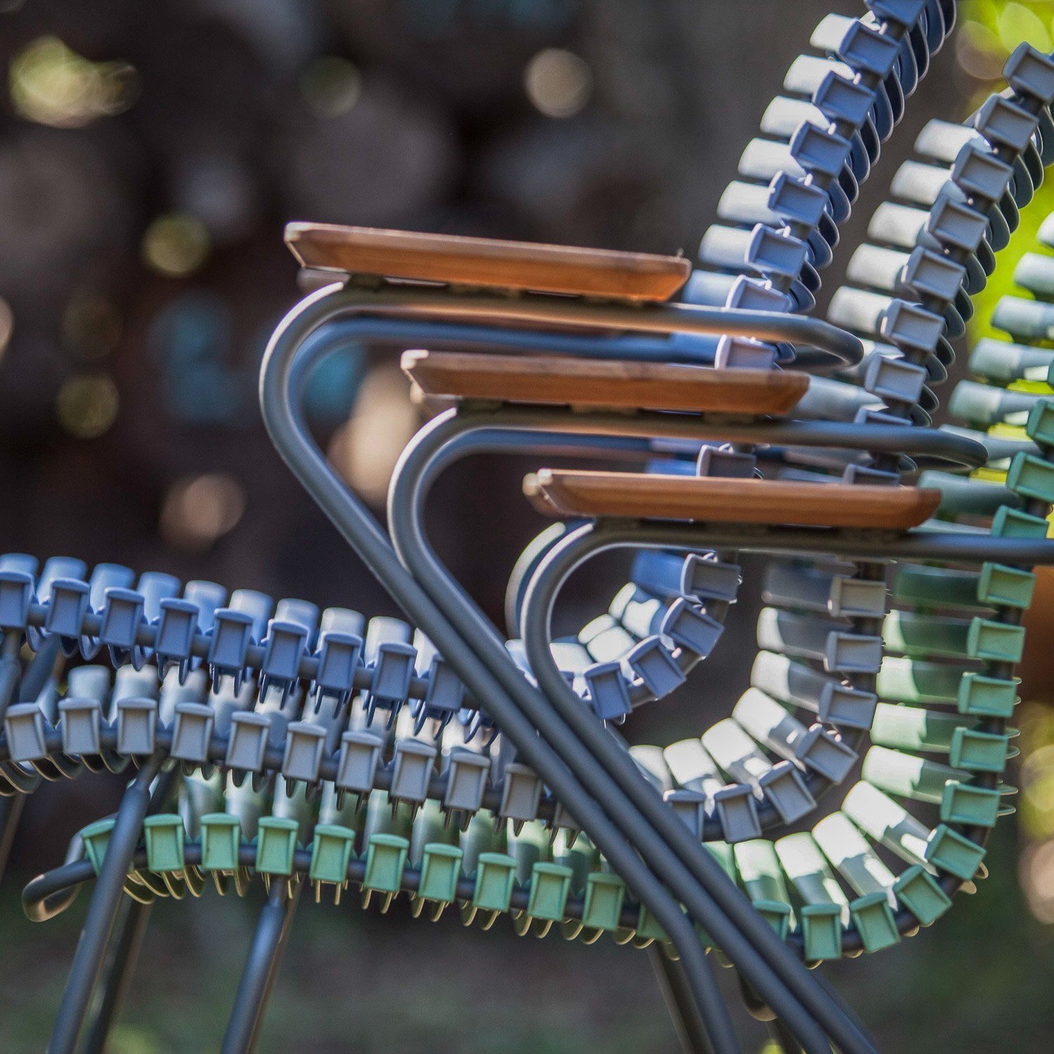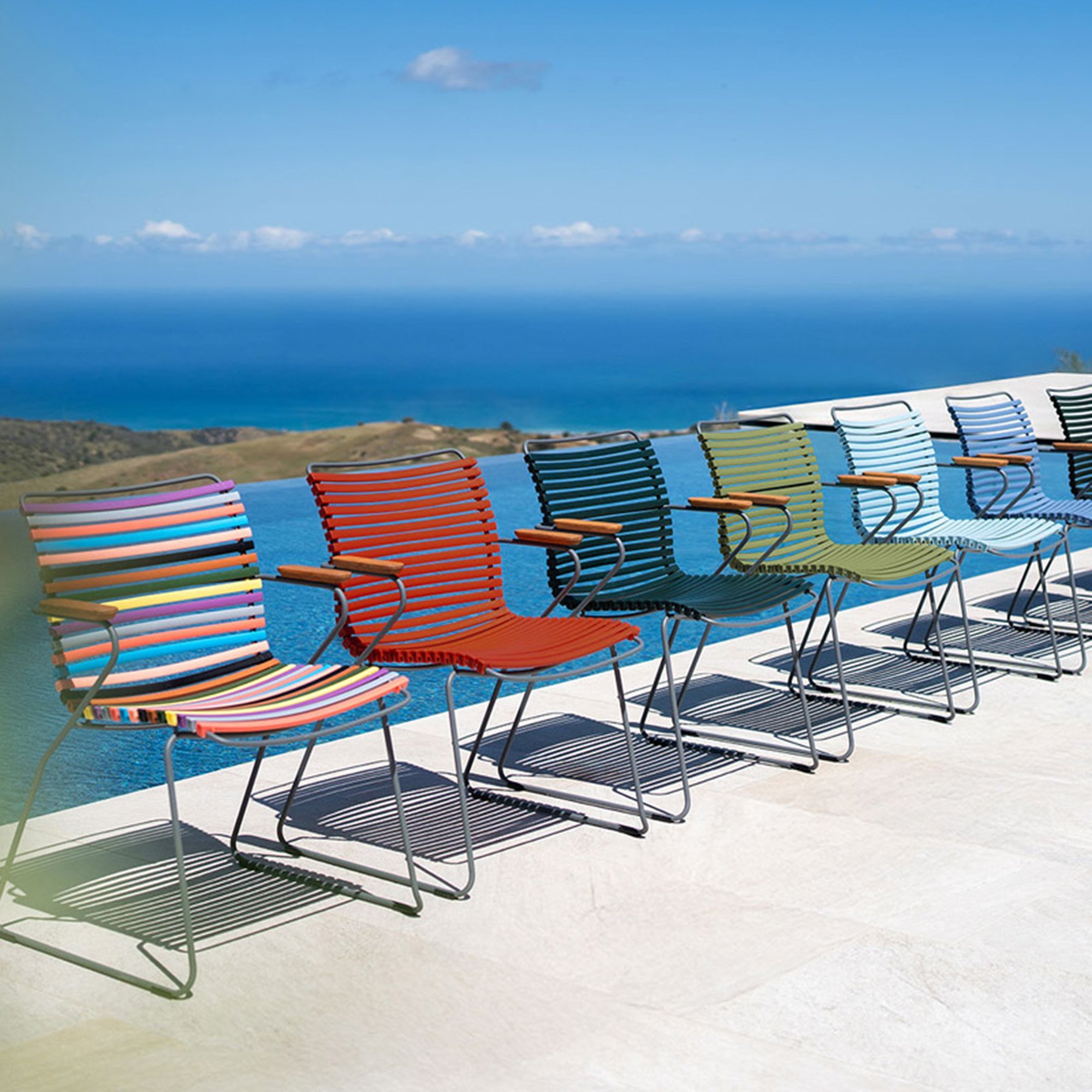 Dass der dänische Hersteller Houe mit seiner Click Kollektion besonders komfortable Gartenmöbel anbietet, hat sich längst herumgesprochen. Die Sitzflächen aus leicht nachgebenden Kunststofflamellen sorgen für Entspannung pur - ganz ohne zusätzliches Sitzkissen. Auf diese Weise kommt auch die bunte Farbpalette der Houe Gartenstühle voll zur Geltung. Der Clou dabei: Die farbenfrohen Kunststofflamellen können - wie der Name bereits sagt - per “Click” einfach ausgetauscht werden, was schier unendliche Kombinationen ermöglicht und der individuellen Gestaltung keine Grenzen setzt. Aber auch wer es ganz klassisch und dezent mag, wird bei den Click Gartenmöbeln zweifellos fündig. Natürliche Akzente setzt Designer Henrik Pedersen mit Armlehnen aus Bambus - für Komfort im Garten, auf der Terrasse oder dem Balkon!