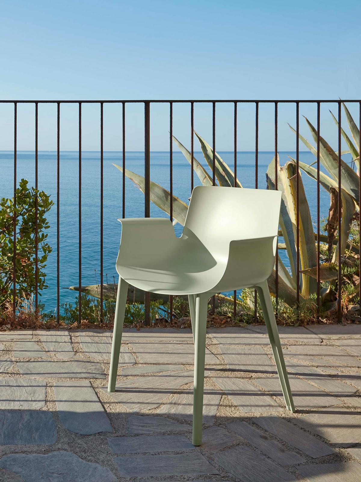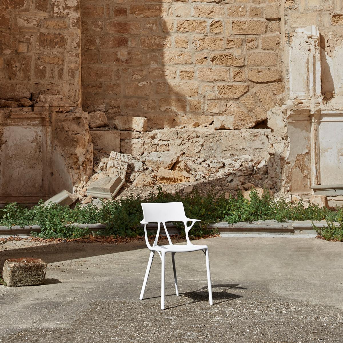 Allein im Jahr 2020 hat Kartell drei neue umweltfreundliche Produktlinien veröffentlicht, darunter der erste aus 100 Prozent recyceltem Material gefertigte Stuhl, der A.I. von Philippe Starck.