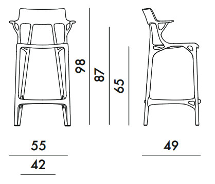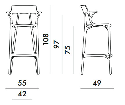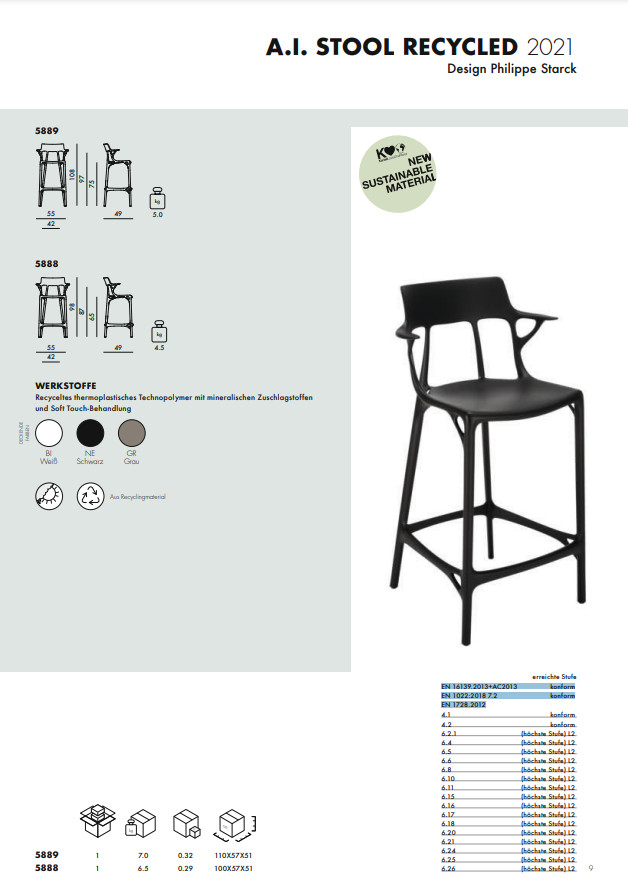 Der A.I. Hocker Recycled von Kartell ist der große, salonfähige Bruder des A.I. Chairs von Philippe Starck. Sein Konzept wurde komplett von einer intelligenten Software erstellt und erhielt von Philippe Starck und seinem Designerteam lediglich den Feinschliff. Kartells A.I. Stühle sind somit perfekt für alle Ansprüche in Sachen Komfort, Ästhetik und Stabilität optimiert.