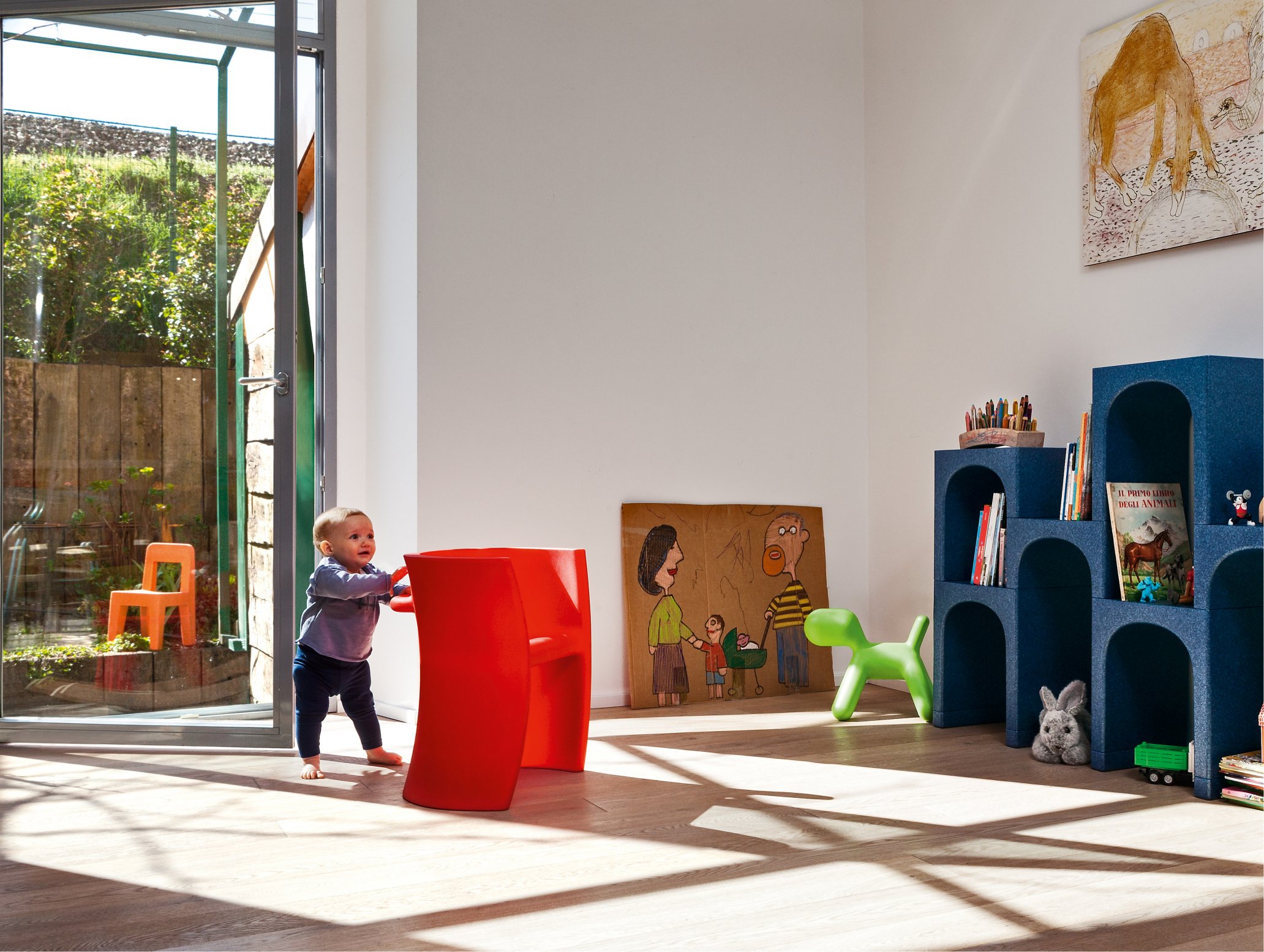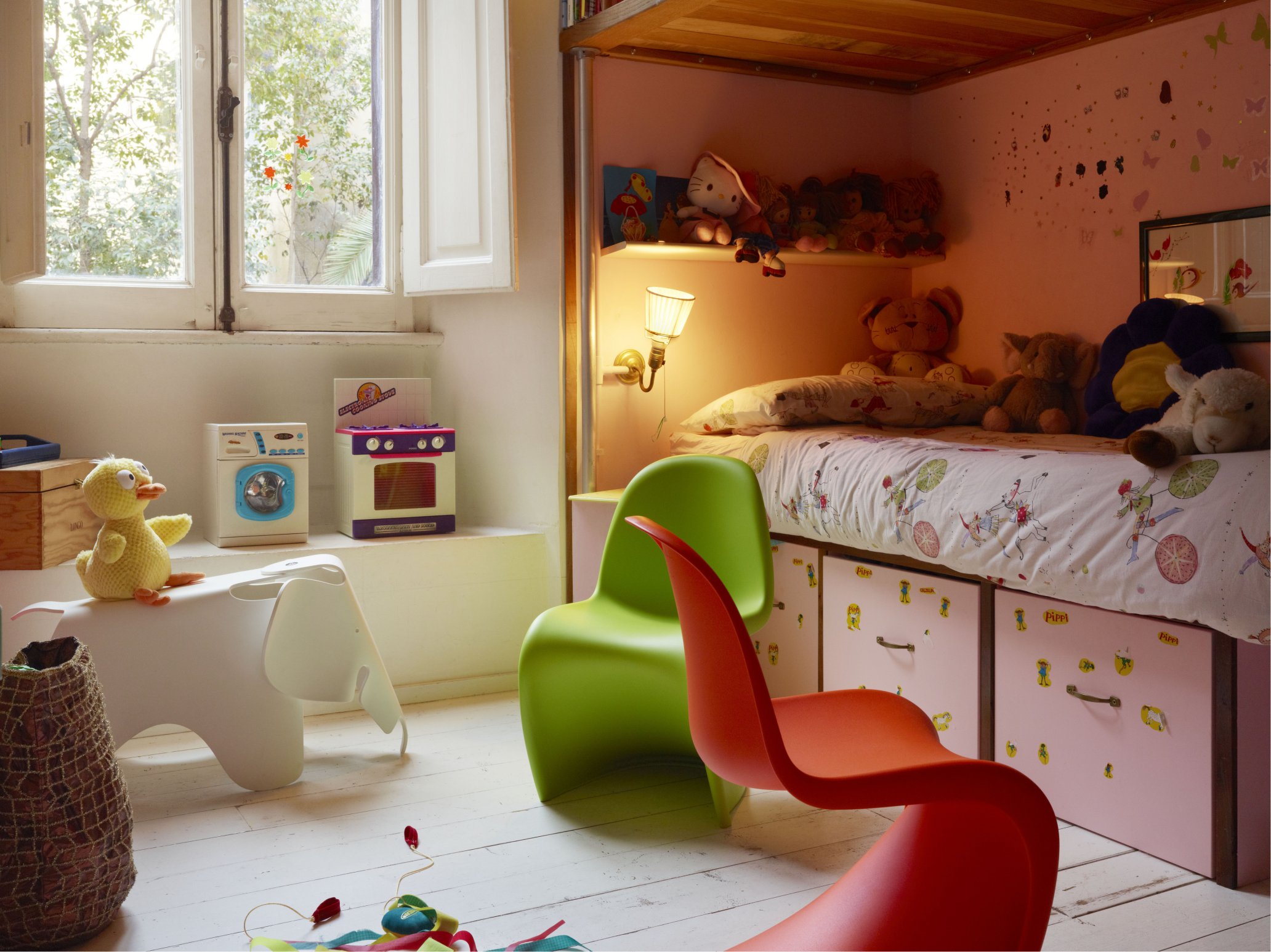 Dass hier also andere Prioritäten gesetzt werden, haben auch Designer verstanden: Bereits Ray und Charles Eames gestalteten Objekte extra für Kinder, so beispielsweise den Eames Elephant, der nicht nur als Kinderspielzeug, sondern auch als Dekorationsobjekt weltweit Bekanntheit erlangte. Eine ganze Kindermöbel-Serie hat der italienische Hersteller Magis mit der Me Too Kollektion auf den Weg gebracht. Entwürfe wie der Kinderstuhl Julian von Javier Mariscal oder Marcel Wanders Little Flare Kindertisch lassen die Grenze zwischen Spielzeug- und Möbeldesign verschwimmen und der Fantasie freien Lauf.