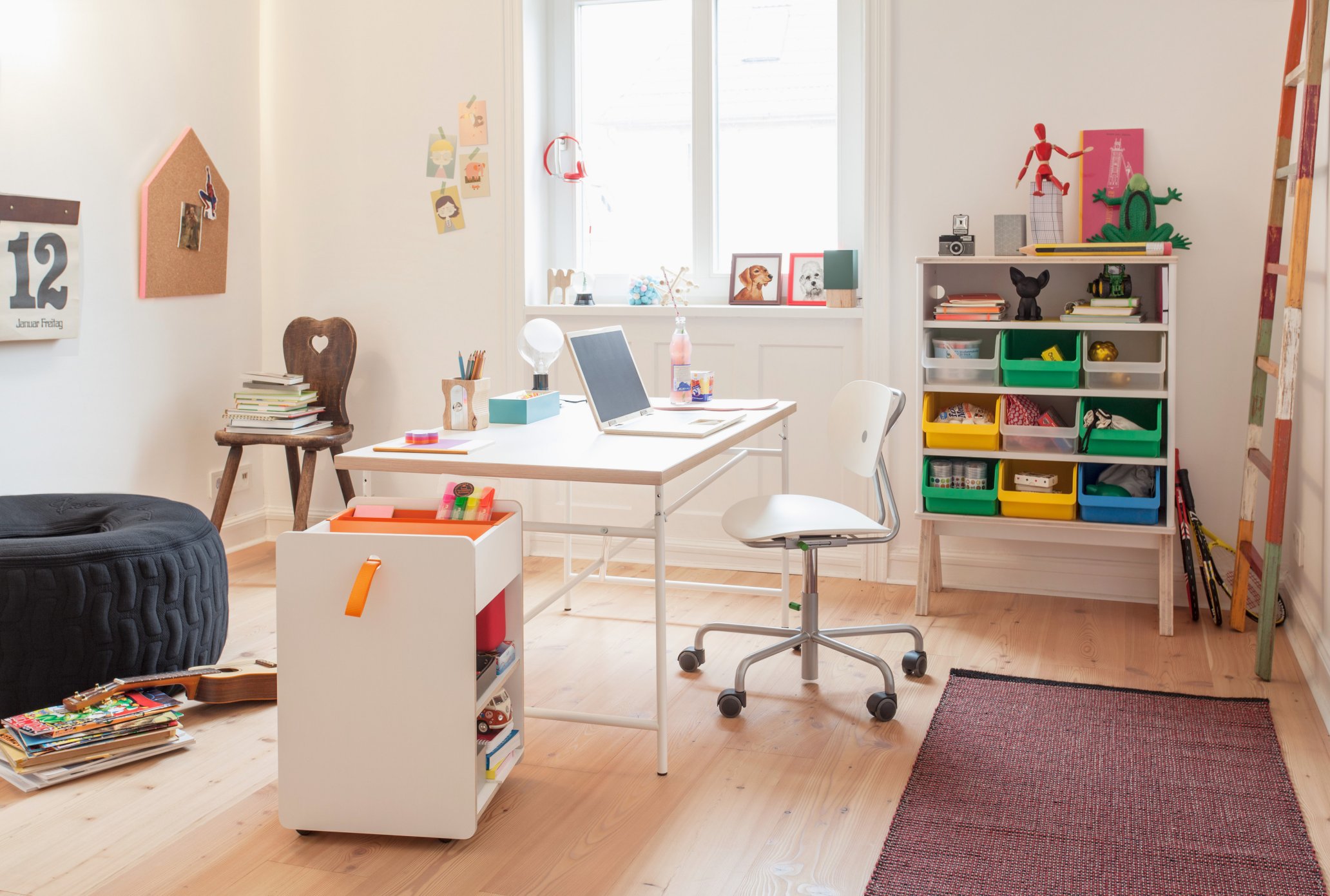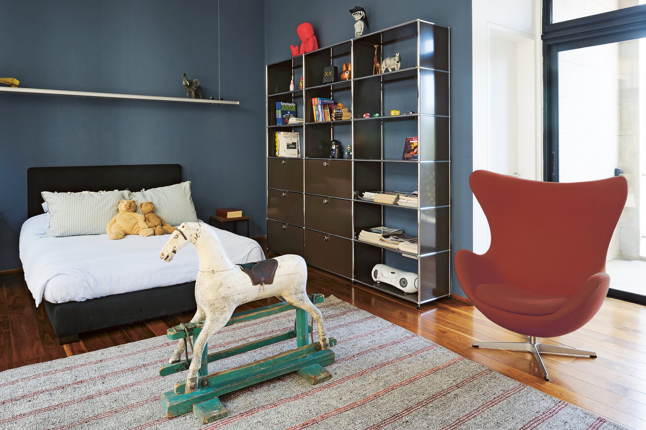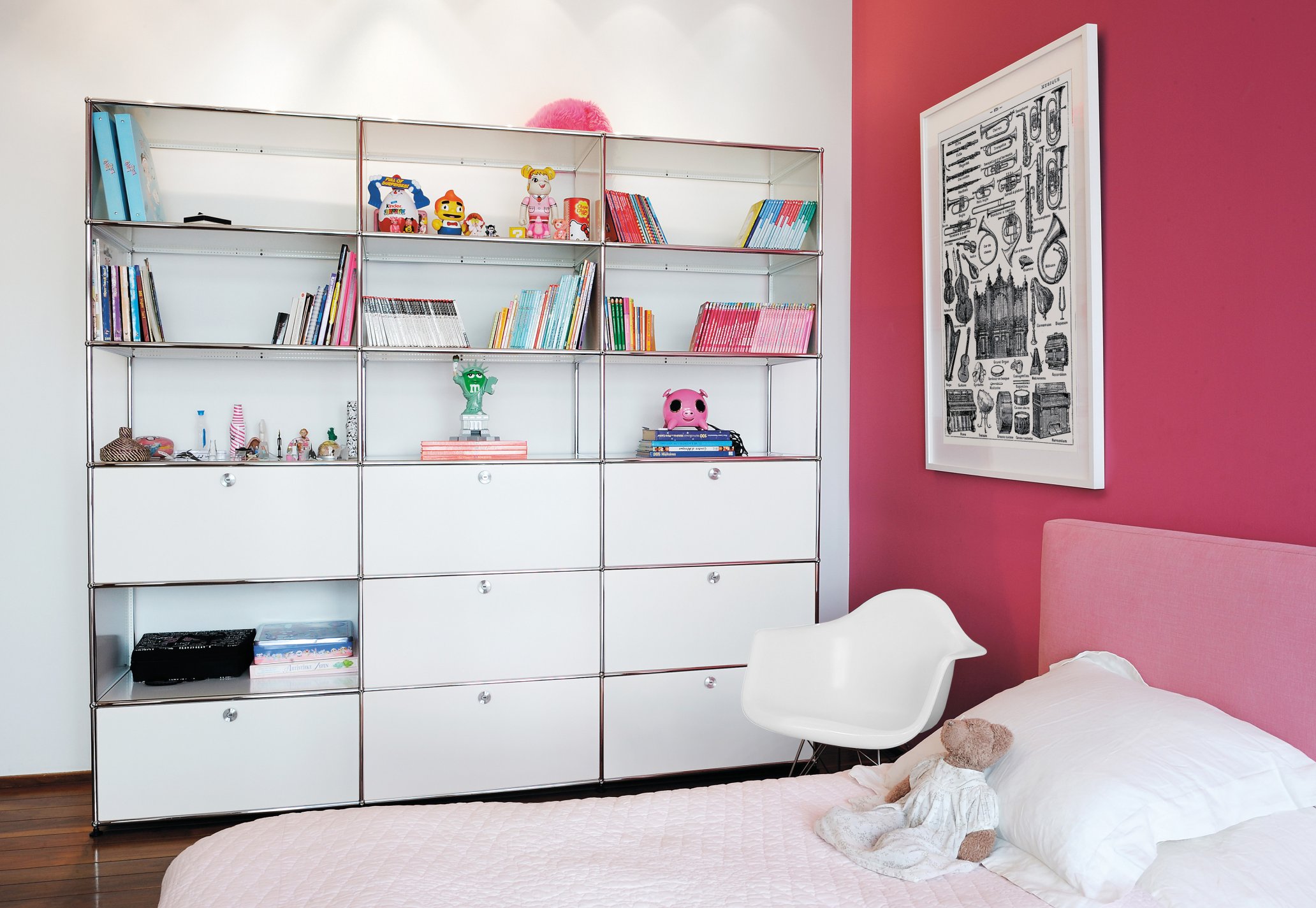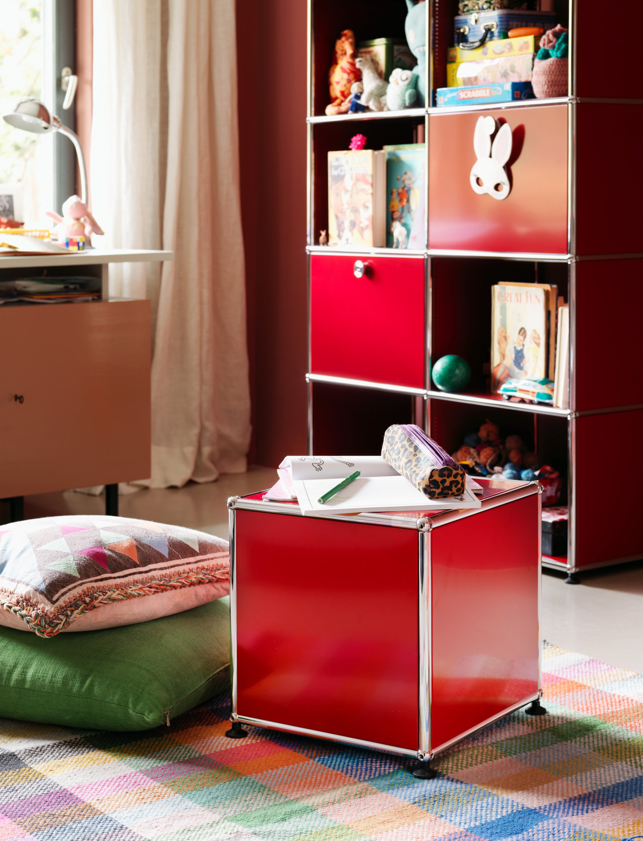 Das USM Haller System bietet verschiedene Aufbewahrungsmöbel für das Kinderzimmer