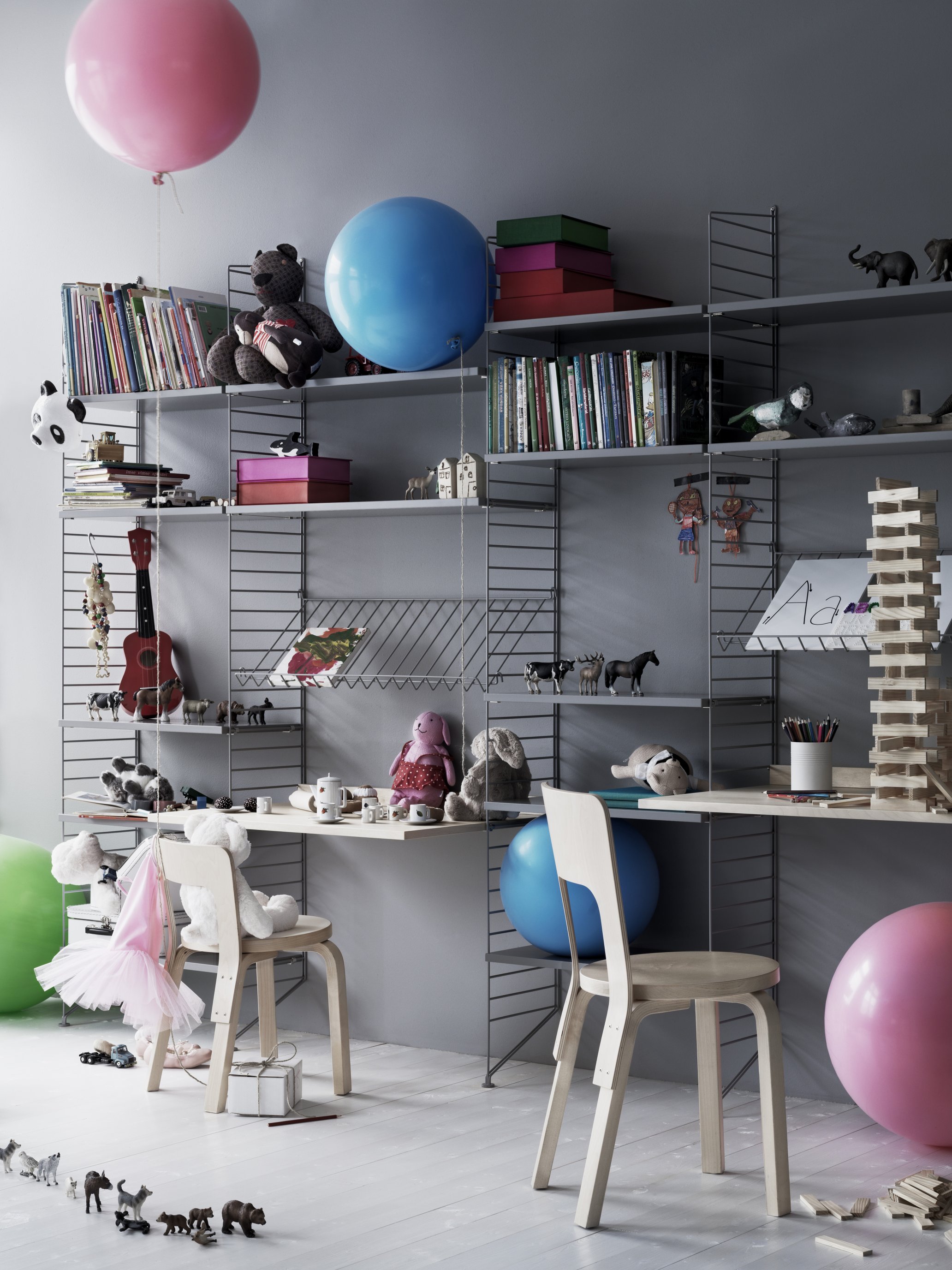 Das immer wieder erweiterbare String Regal macht sich auch im Kinderzimmer gut