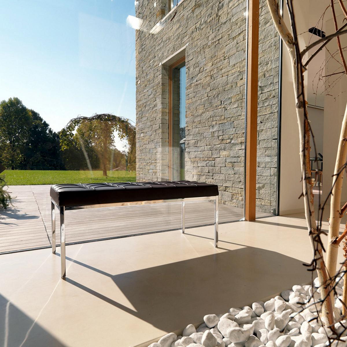 Materialien wie Stahlrohr und Leder eignen sich perfekt für repräsentative Lounge- und Wartebereiche. Als wahrhaft königliches Daybed entpuppt sich die Barcelona Liege - eine der berühmtesten Knoll Liegen. Entworfen von Ludwig Mies van der Rohe als Ergänzung zu seinem legendären Sessel Barcelona Chair, verkörpert der Designklassiker mit seinem in Handarbeit gefertigten mit Keder und Knöpfen versehenen Lederbezug die hohe Kunst des Möbelherstellers Knoll International.