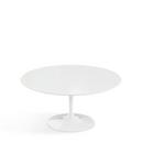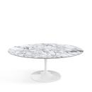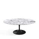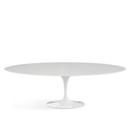 Der Knoll Saarinen Couchtisch Oval ist einer von zahlreichen Couch-, Ess- und Beistelltischen, die Eero Saarinen in den 1950 Jahren für den Möbelhersteller Knoll International entwickelte. Inspiriert zu der sogenannten Pedestal Collection, zu der auch der berühmte Tulip Chair gehört, hatte Saarinen die "hässliche und unruhige Welt" der Stuhl- und Tischbeine, die er immer wieder als störend wahrnahm. So schuf er Möbel mit einem einzigen, säulenartigen Fuß, die - durch den Verzicht auf die üblichen vier Beine - Ruhe und Harmonie ausstrahlen. Was damals als aufsehenerregende Neuheit galt, ist nach wie vor das Markenzeichen der populären Saarinen Beistelltische. Säulenfuß und Tischplatte sind dabei so miteinander verbunden, dass sie eine in sich geschlossene, weiche Form bilden. In Verbindung mit den hochwertigen Oberflächenmaterialien der Tischplatte erweist sich der ovale Saarinen Couchtisch so als überaus eleganter und dekorativer Tisch für die geschmackvolle Wohnzimmereinrichtung.