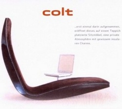 Am 25. Juni werden wir eine Ausstellung mit Produkten und Entwürfen junger Designer und Innenarchitektenaus Sachsen, Sachsen-Anhalt und Berlin zeigen. Ziel ist es, ihnen eine öffentliche Plattform im sonst Hersteller-dominierten Markt zu bieten. Publikum und Entwerfer sind auf die gegenseitigen Reaktionen schon jetzt sehr gespannt.(im Bild: COLT, Sitzmöbel, 2003, Tom Kühne, Berlin)