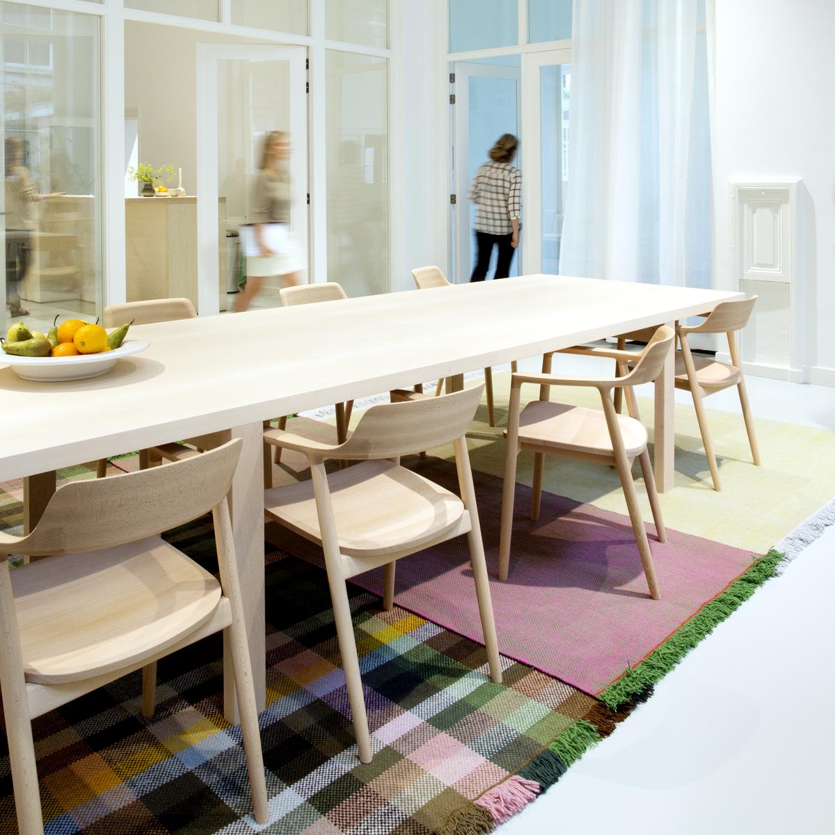 Die Kvadrat Rugs, die ehemals unter dem Markennamen Danskina vertrieben wurden, zeichnen sich besonders durch hervorragende Handwerkskunst, akribische Sorgfalt und Liebe zum Detail aus. Charakteristisch für die Teppiche von Kvadrat sind die einzigartigen Strukturen der Textilien, die durch ein harmonisches Zusammenspiel aus klassischen Techniken und zeitgenössischen Designansätzen entstehen. Kvadrat hat sich unter Architekten, Händlern und Interiordesignern weltweit als feste Größe etabliert und arbeitet äußerst erfolgreich mit der international renommierten Designerin Hella Jongerius zusammen, die 2013 zur Leiterin des Designbereichs von Danskina berufen wurde und verschiedene Designteppiche für die Kollektion entwarf. Auch in Sachen Herstellungsverfahren verhält sich Kvadrat vorbildlich. Bei der Produktion werden neueste Technologien mit traditioneller Handwerkskunst und erstklassigen Materialien verknüpft. Dazu nutzt das weltweit agierende Textilunternehmen häufig bereits vorhandene Strukturen und lässt die Teppiche je nach Modell von Fachkräften in den Niederlanden, Schottland, Deutschland, Nepal und Indien produzieren. Aufgrund des komplexen Produktionsverfahrens und langer Lieferwege sind die beliebtesten Kvadrat Teppiche als "Kvadrat Rugs in Stock" mit einer kürzeren Lieferzeit erhältlich.