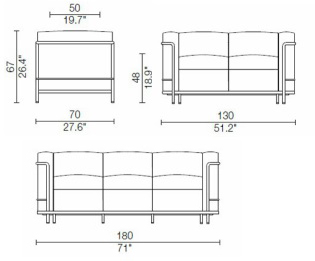 Der Name Cassina wird fast automatisch in Zusammenhang mit hochwertigem italienischen Design genannt. Der Hersteller, der seinen Sitz Nahe Mailand hat, wurde 1927, also nur zwei Jahre vor der Erstausstellung der LC Serie gegründet und steht seit jeher für hochwertige Produkte, die erlesene Materialien und zeitlos ästhetisches Design in sich vereinen. Für die nötige Vielfalt ist das Cassina Sortiment untergliedert in zwei Kollektionen: unter „I Maestri“ finden sich Designklassiker bekannter und bewährter Designer, so wie Le Corbusiers LC2 Sofa und daneben verteibt der Hersteller Produkte, die zur „I Contemporanei“ Kollektion gehören und, wie der Name schon vemuten lässt, Werke jüngerer und zeitgenössischer Designer sind. Anfangs war das Kerngeschäft des Unternehmens die Ausstattung von Innenräumen von Luxuslinern und Kreuzfahrtschiffen, was sich auch bis in die 60er Jahre nicht änderte. Erst dann fing man an, Designs, die in den 50er Jahren bereits entwickelt wurden zu realisieren und auch die ersten Designs von Le Corbusier zu produzieren. Der Kundenstamm von Cassina erweiterte sich um eine Reihe von Luxushotels und Boutiquen, die ihre Räumlichkeiten komplett von dem italienischen Hersteller ausstatten ließen, der seine Prinzipien von der Anwendung fortschrittlicher Technologien in Verbindung mit traditionellen Materialien bis heute beibehalten wird. Bei Cassina wird nach höchsten Standards gefertigt, und trotzdem von Hand kontrolliert und sichergestellt, dass die Produkte stets den hohen Anforderungen entsprechen. Als exklusiver Halter der Rechte an den Entwürfen einiger Le Corbusier Möbel, wie auch des LC2 Sofas, legt Cassina besonders großen Wert auf die Echtheitskennzeichnung der Produkte, die sowohl mit einem Stempel mit Firmenlogo und Autorenunterschrift, als auch einer Identifikationsnummer versehen sind.