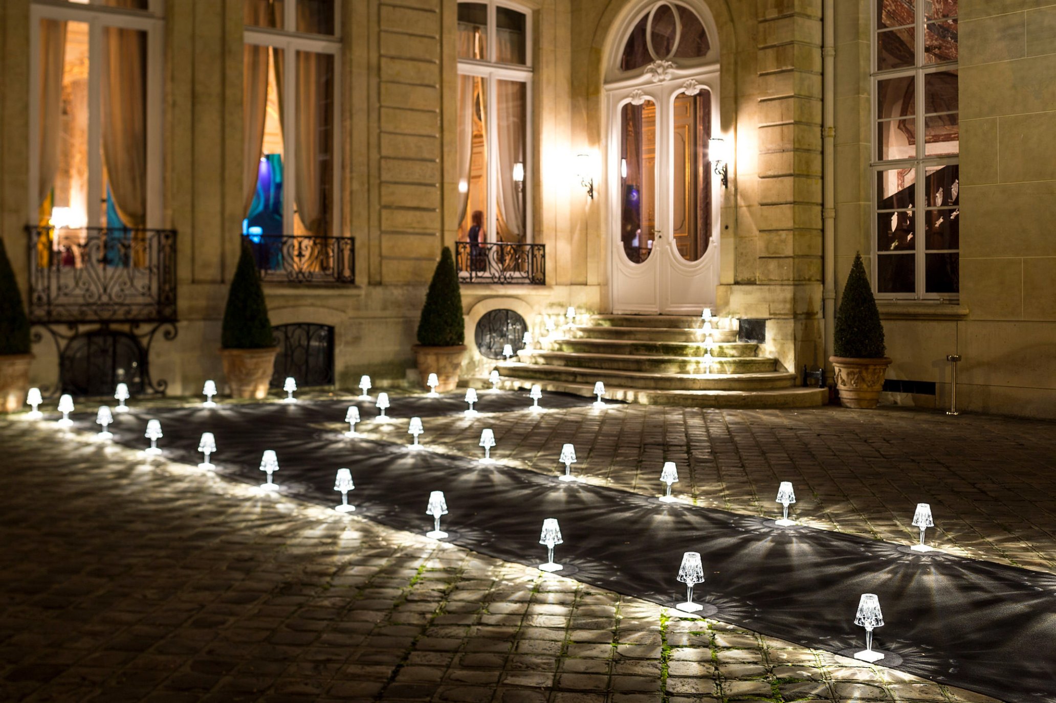 ...Der Charakter der "Light + Building Frankfurt" wird von der Tatsache bestimmt, dass es bei der Messe eher um "Licht in Gebäuden und um Gebäude herum" geht... Die Form der Akustikpads wurde so realisiert, dass sie die bestehenden Nimbus Pendelleuchtenfamilien ergänzen und so eine logische, unaufdringliche Kombination von Licht und Akustik möglich machen...