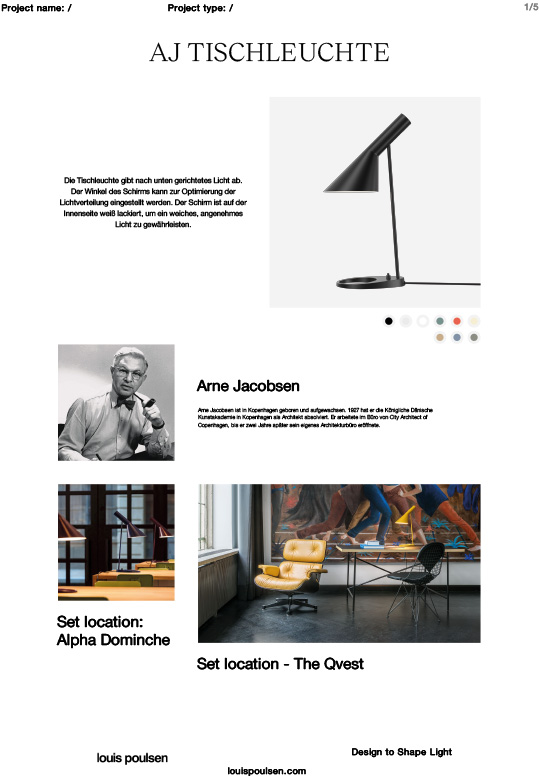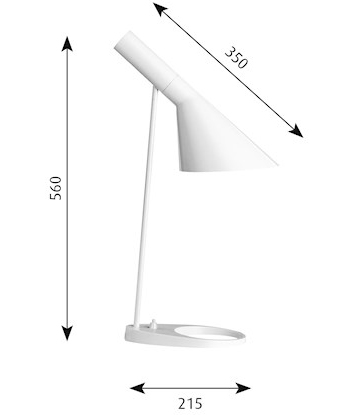 Die AJ Tischleuchte wird in Dänemark über Louis Poulsen und in enger Zusammenarbeit mit Zuliefererfirmen hergestellt. Schirm und Ständer der Louis Poulsen Tischlampe werden aus Stahl gefertigt, der Fuß besteht aus einem Zinkdruckguss. Der Leuchtenkopf ist neigbar. Der gesamte Leuchtenkörper wird farbig lackiert, wobei Louis Poulsens AJ Tischleuchte in acht Farben erhältlich ist. Der Leuchtenschirm ist innenseitig weiß lackiert und strahlt so ein angenehm diffuses Licht ab. Louis Poulsen stellt schon seit vielen Jahrzehnten Lampen her - bereits in den 1920er Jahren die ersten PH Leuchten von Poul Henningsen. Diese Erfahrungen schafft kombiniert mit dem Einsatz hochwertiger Materialien ausschließlich erstklassige Produkte. Wobei Louis Poulsen Lampen wie die von Arne Jacobsen nicht nur durch ihre hohe Qualität, sondern vor allem wegen ihres ausgefeilten Designs zu ihrem Klassikerstatus kamen.
