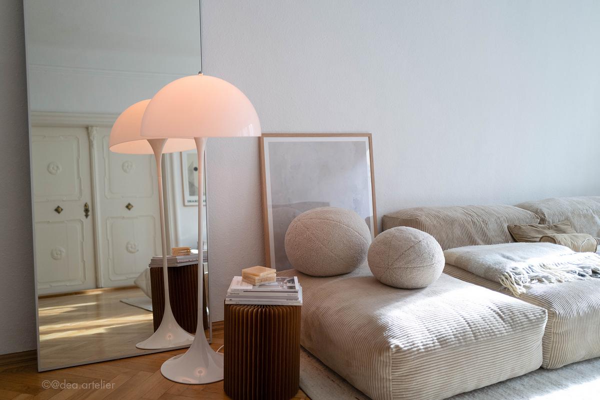 Die Panthella Kollektion von Verner Panton umfasst alle Panthella Leuchten des legendären dänischen Designers, dessen Werke vor allem organische Formen und kräftige Farben auszeichnen. Ursprünglich entwarf Panton die Leuchten 1971, inzwischen wird die gesamte Serie von Louis Poulsen produziert. Pantons Ziel war es, eine Leuchte zu entwerfen, bei der nicht nur der Schirm, sondern auch der Fuß als Reflektor dienen sollte. Dies ist ihm so gut gelungen, dass sich im Laufe der Jahre immer mehr Panton Leuchten zur Kollektion hinzugesellten, so zum Beispiel 2016 die Panthella Mini. Wenig später ließ sich Louis Poulsen eine besondere Hommage an den Designer einfallen: Verner Panton hatte schon immer eine Schwäche für Chrom, zu seinen Lebzeiten war eine solche Leuchte jedoch technisch noch nicht realisierbar. 2018 launchte das dänische Designlabel dann zu Ehren Pantons die Panthella Mini Chrom. Verständnis für Innovation bewies Louis Poulsen mit der Panthella Portable, einer tragbaren Akkuleuchte, die ganz ohne Kabel auskommt. Pünktlich zum 50-jährigen Jubiläum präsentiert sich die Panton Leuchte als Panthella Midi in neuer Größe und bildet die perfekte Ergänzung für die bestehende Panthella Familie.