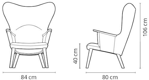 | Material | Bezug: Stoff Fiord (92 % Schurwolle, 8 % Nylon) oder Stoff Passion (91 % Neuseeland Wolle, 9 % Polyamid) Beine, Armlehnen: massive Eiche geölt oder geseift Sitz/Rückenlehne: massive Buche, Schaumstoff |