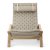 | Material | Gestell: Massivholz, Stahl Bezug Sitz & Rücken: Stoff Canvas natur (100 % Leinen) Füllung Sitz & Rücken: Schaumstoff Riemen/Armlehnen: Sattelleder natur Halterungen: Messing |