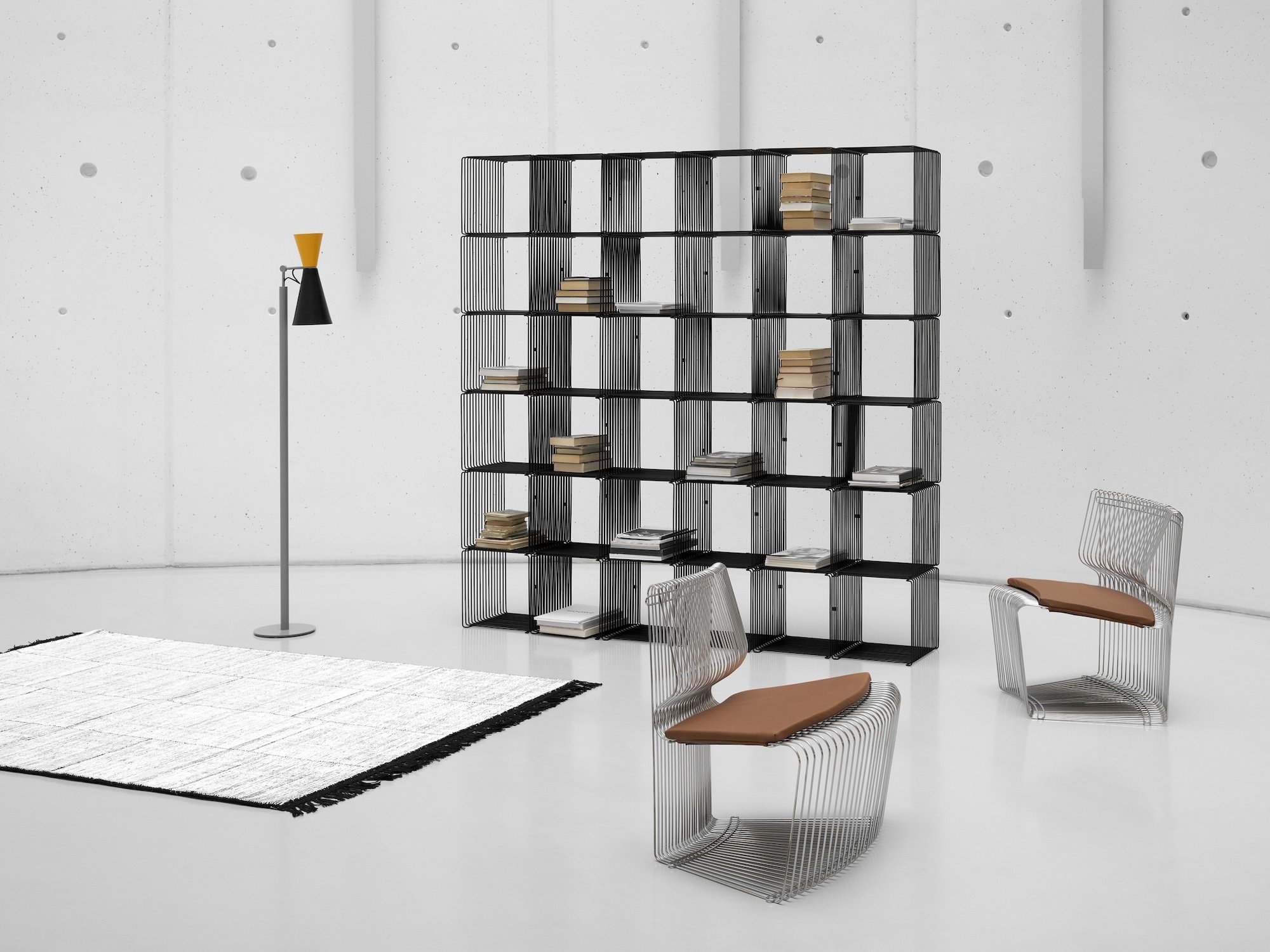 In zahlreichen Größen und Varianten erhältlich, verbindet das modulare Panton Wire Regal eine filigrane Drahtstruktur mit flexibler Erweiterbarkeit und vielseitigen Einsatzmöglichkeiten als Wandregal, Sideboard oder Beistelltisch im gesamten Wohn- und Arbeitsbereich.