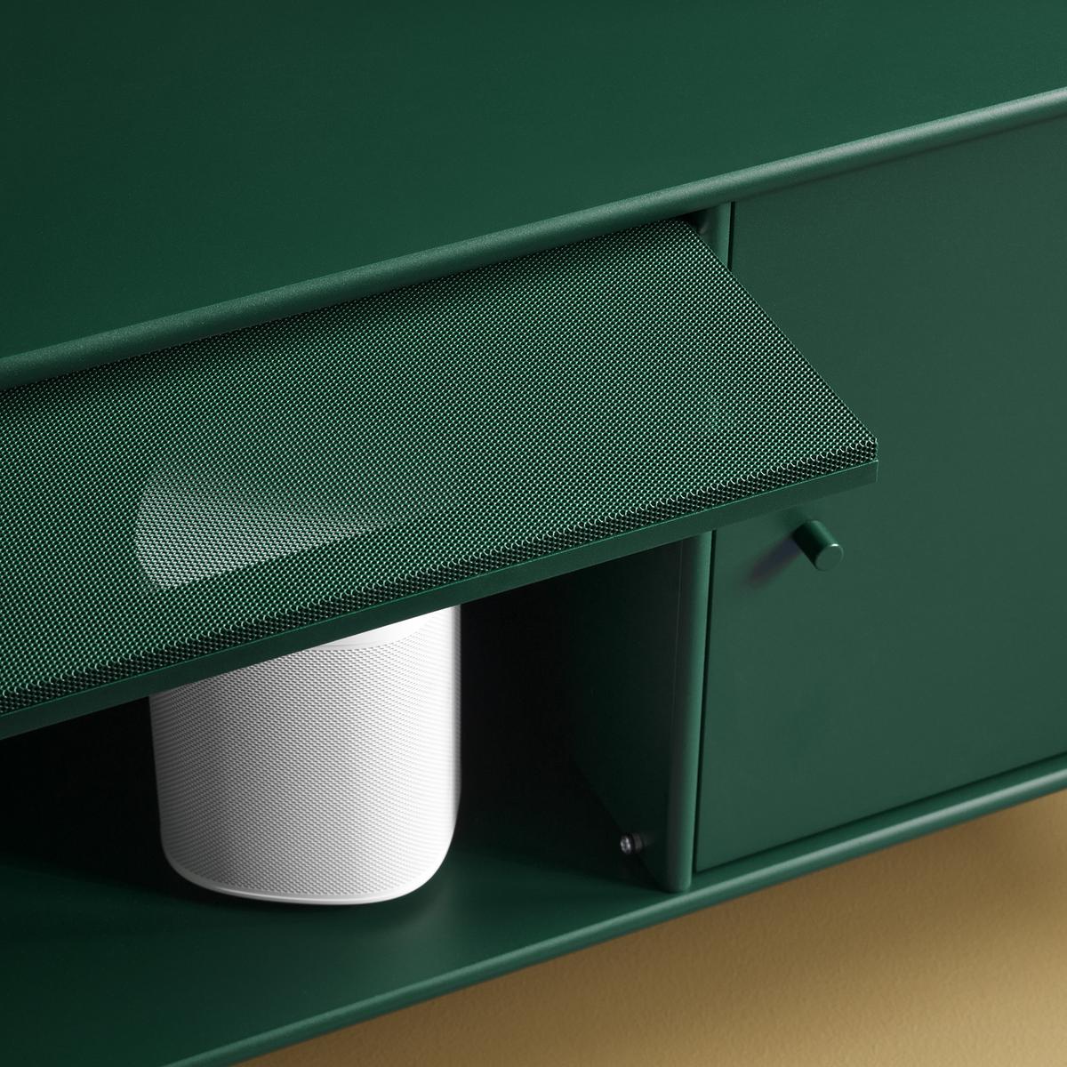 Perforierte Einschubtüren sind nie im Weg und garantieren perfekten Sound und gute Durchlüftung