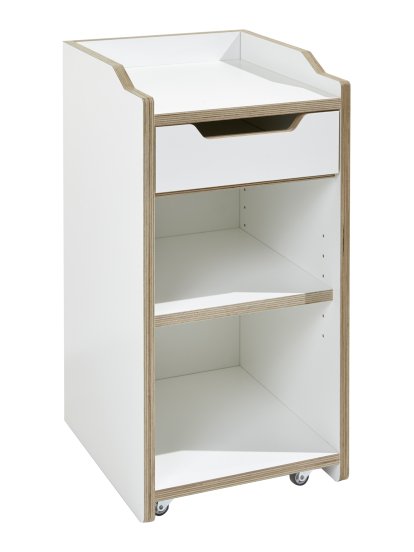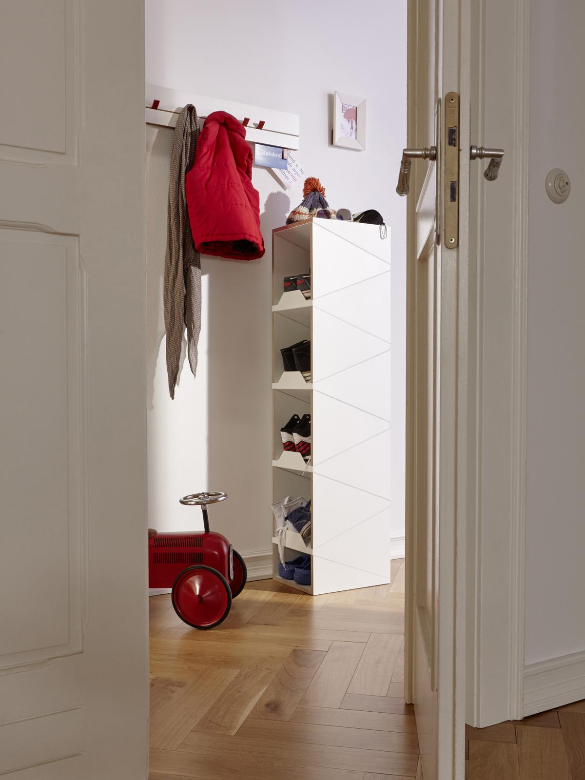 ...Aus melaminbeschichteter Birke und in lauter exotischen Farben erhältlich, ist Flatmate von Michael Hilgers für Müller Möbelwerkstätten zugegebenermaßen kein Produkt, das sich für jedes Zuhause eignet, aber in der richtigen Umgebung kann er auf jeden Fall eine unschätzbare Hilfe für die häusliche Ordnung sein...