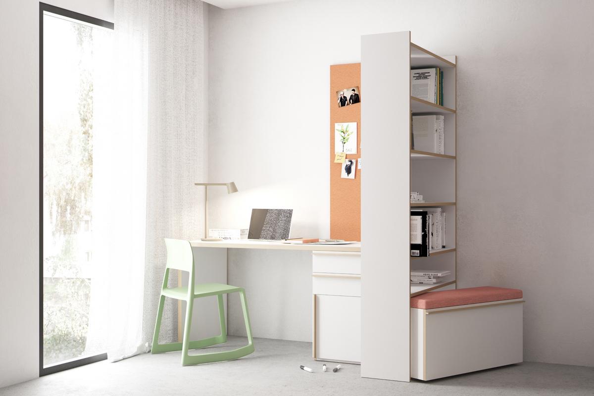 Neben intelligenten Konzepten für Privatwohnungen bietet Müller Small Living im Rahmen seines Konzepts der Gestaltung kleiner Räumlichkeiten ebenso Lösungen für den Objektbereich. Hier stehen vor allem die Bereiche im Fokus, in denen viele Menschen auf kleinem Raum leben und arbeiten, wie Studentenwohnheime, Hotels, Krankenhäuser oder andere Objekte, die sogenannte Mikroapartments beherbergen. Der begrenzte Raum erfordert besonderes planerisches Geschick und flexible und platzsparende Einrichtungskonzepte mit multifunktionalen Möbeln, ohne jedoch ein gemütliches wohnliches Ambiente außer Acht zu lassen. Gerade in Objekten, die einen längeren angenehmen Aufenthalt gewährleisten und gegebenenfalls sogar der Erholung dienen sollen, wie Kur-Einrichtungen oder Hotelzimmern, darf bei aller Funktionalität das Wohlfühlen nicht zu kurz kommen. Dank seiner weitreichenden Expertise meistert der deutsche Möbelhersteller diese Herausforderungen mit Bravour. Angefangen bei Designklassikern wie der Stapelliege von Rolf Heide über den flachen Flatmate Sekretär bis hin zu individuellen Stauraumlösungen bietet Müller Small Living platzsparende Designmöbel für jegliche Ansprüche und Gegebenheiten. Gemeinsam mit den Kölner Designern Kaschkasch entwickelte der Hersteller zudem das intelligente Möbelsystem Corner, das nach dem Baukastenprinzip funktioniert und optimale Flächennutzung bei geringen Kosten verspricht.