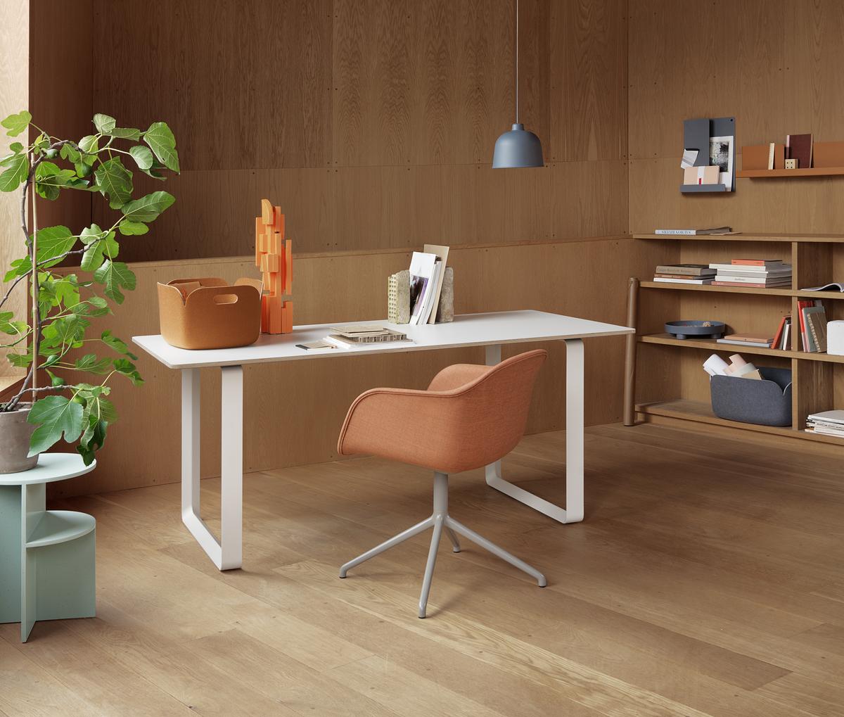 In Zeiten des digitalen Wandels rückt das Konzept Home Office immer stärker in den Fokus. Was für junge Start-ups zum Daily Business gehört, wird nun auch für Unternehmen mit bislang eher konservativen Arbeitsstrukturen zur Realität. Innovative Designlabels wie Muuto liefern optimale Einrichtungslösungen, die das Arbeiten zu Hause angenehm gestalten. Gerade für all jene, die länger oder gar dauerhaft von zu Hause arbeiten, birgt das Konzept Home Office den Vorteil, Einrichtung und Farbwahl nach individuellen Vorlieben gestalten zu können. Muuto Home Office Möbel sind in zahlreichen Ausführungen und Farbnuancen erhältlich und harmonieren so wahlweise klassisch oder setzen mutige, spielerische Akzente. Tische wie der 70/70 Table oder Muuto Stühle wie der Fiber Chair brechen mit konventionellen Vorstellungen von Büromöbeln und verwandeln die Arbeitsecke zu Hause in ein modernes Office. Auch Beleuchtung und Aufbewahrungslösungen dürfen im Home Office ruhig etwas eleganter ausfallen als im Großraumbüro. Hier hält der dänische Hersteller ein breites Portfolio an Muuto Schreibtischleuchten und Accessoires im skandinavischen Design bereit.