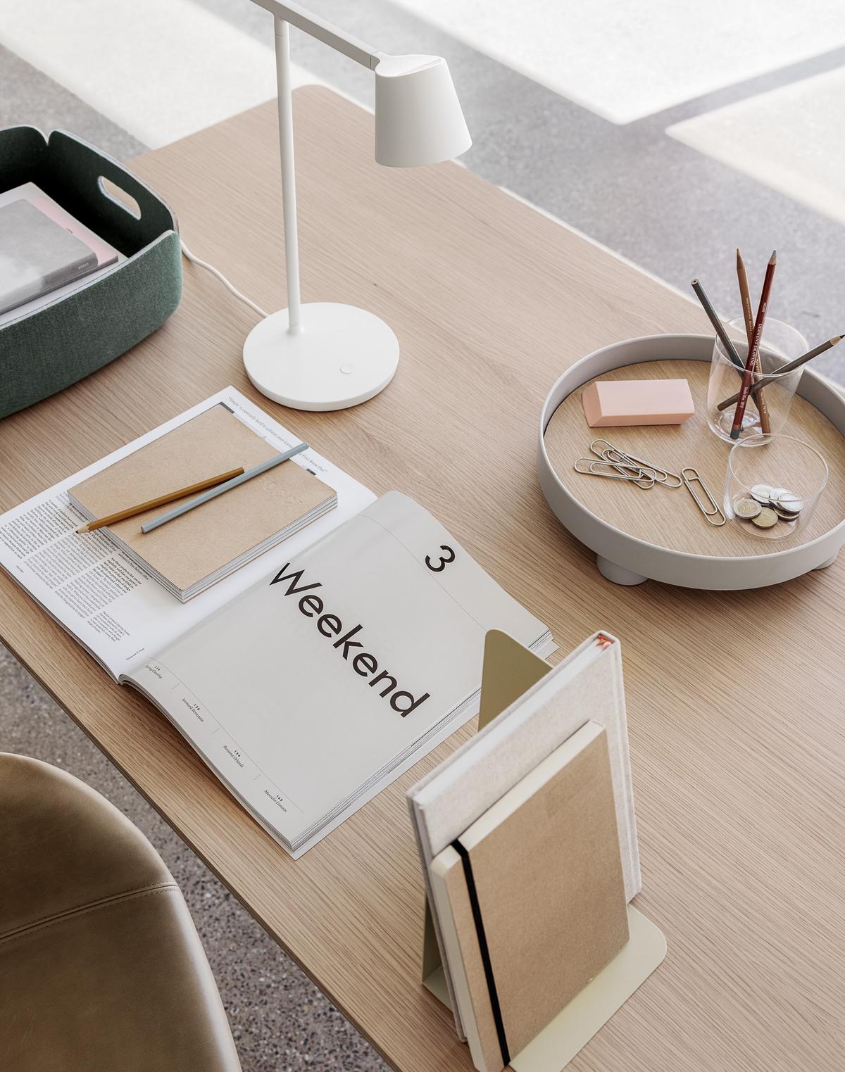 Arbeitsplatz mit Leaf Tischleuchte von Muuto