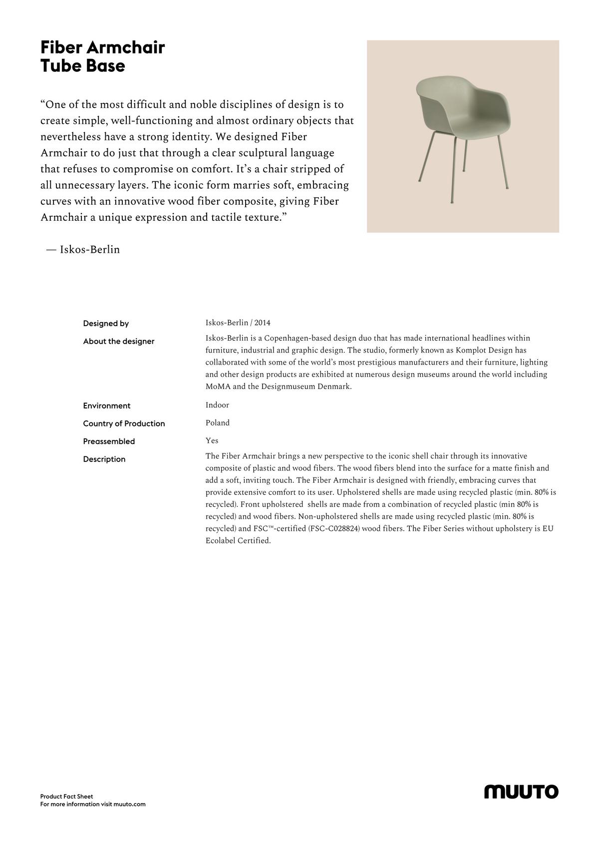 | Ausführungen | Fiber Side Chair Tube, Fiber Armchair Wood und Fiber Armchair Swivel separat erhältlich |