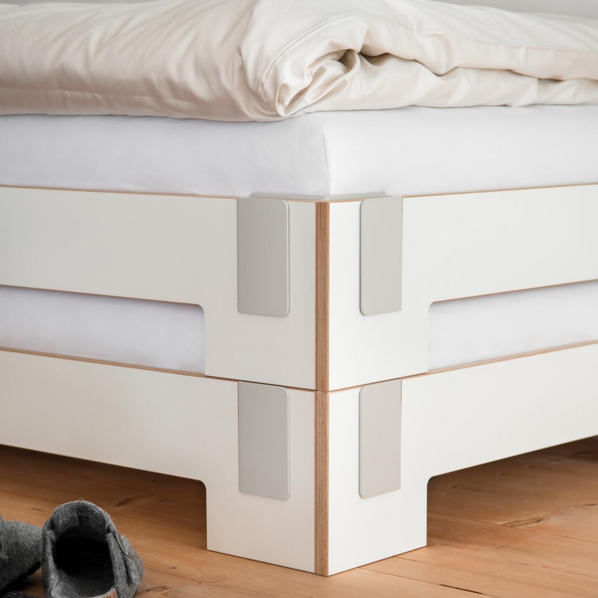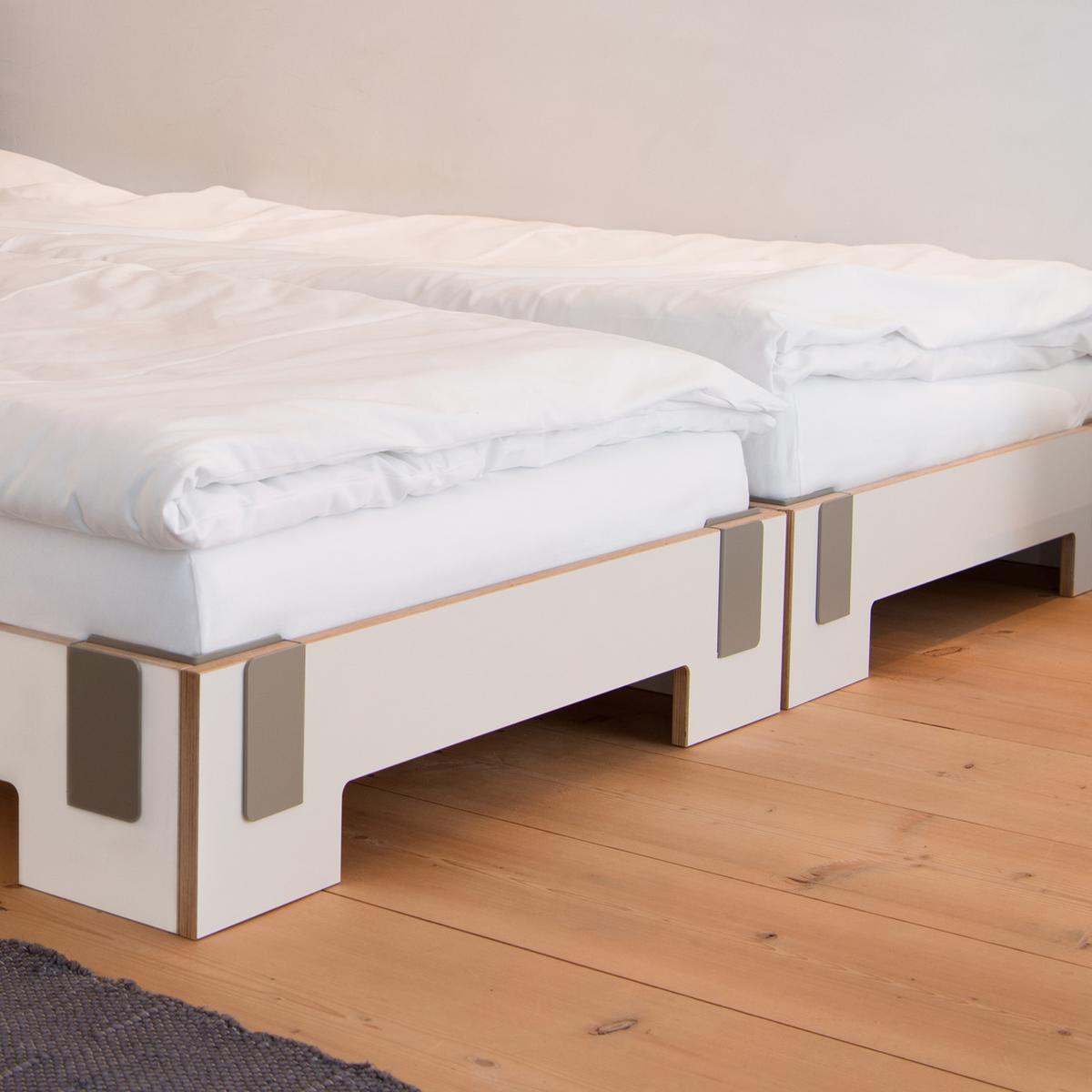 ...Bei aller Radikalität, die das Panton Bett für sich in Anspruch nimmt, handelt es sich doch um ein verblüffend einfaches Konzept... Pantons verblüffend einfaches Konzept basiert auf einem ebenso verblüffend einfachen 1 m langen kammartigen Element, das mit anderen 1 m langen kammartigen Elementen verbunden werden kann: Es handelt sich um 18 solcher miteinander verknüpften Elemente, 9 in Längsrichtung und 9 in Querrichtung, die einen 1 m x 1 m großen Sockel bilden, ein 1 m x 1 m großes Bett...