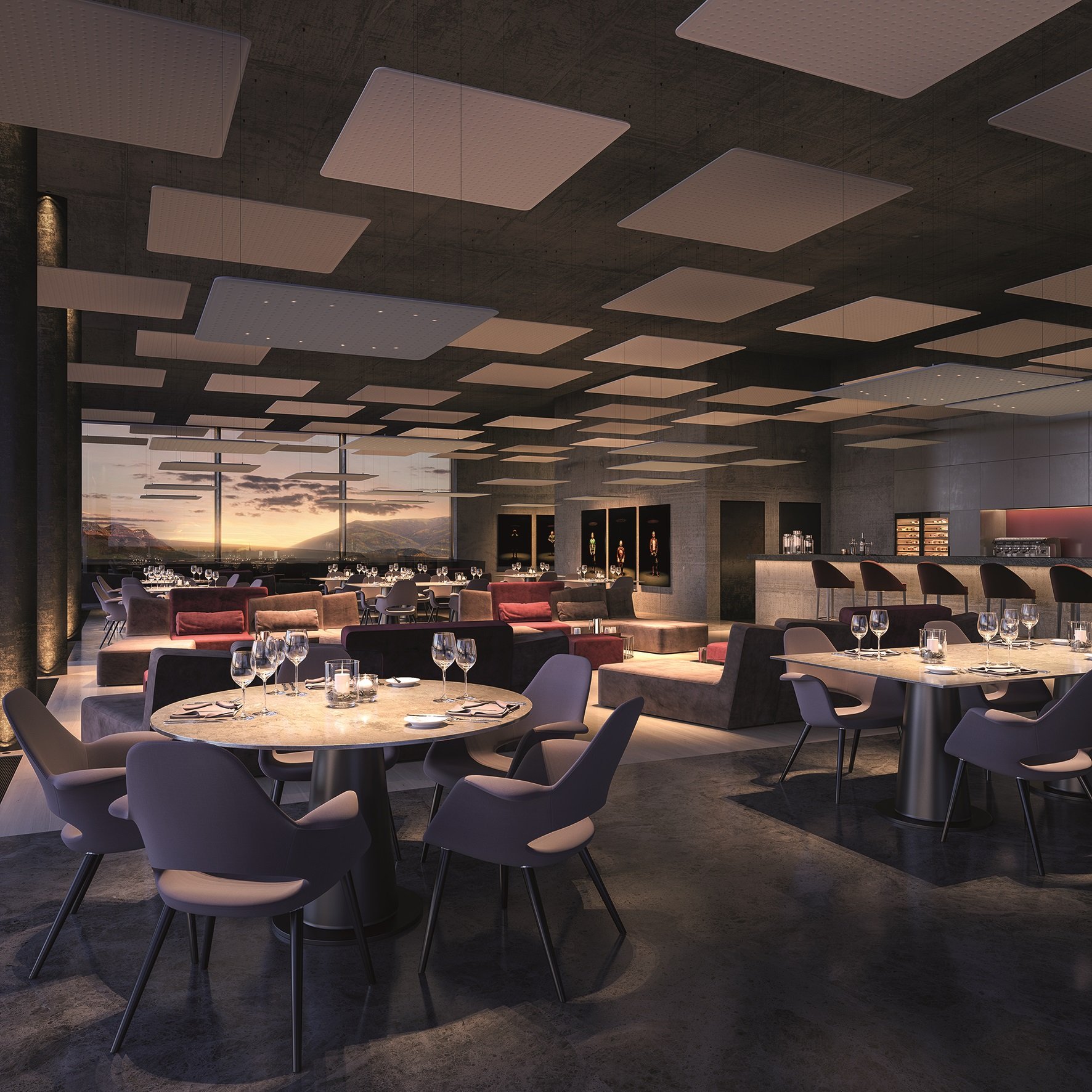 Kunstvolles Lighting Pad Arrangement im Restaurant (Bild © DesignRaum GmbH)