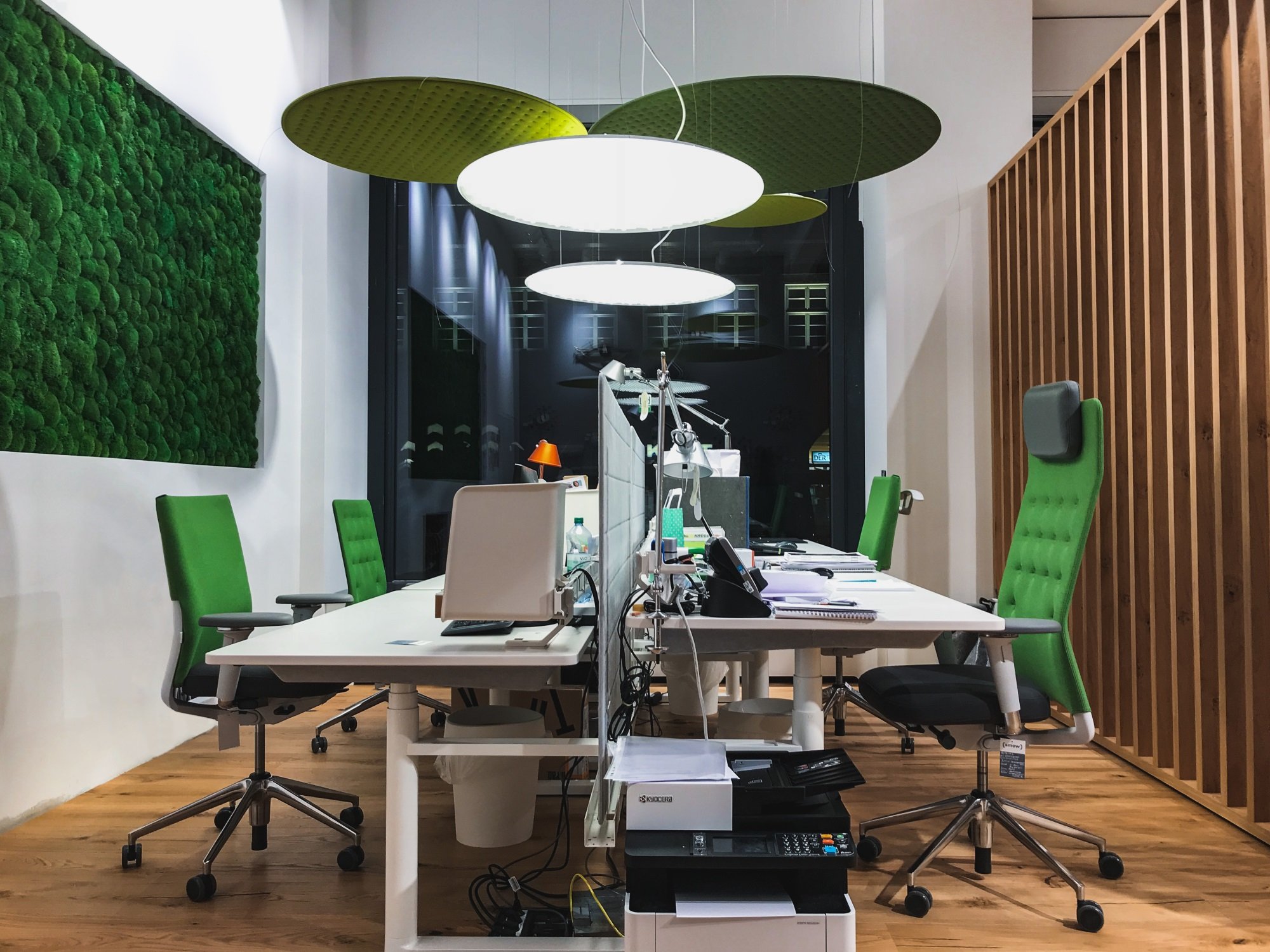 Nimbus Tischleuchten im Großraumbüro (Bild © Frank Ockert)