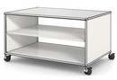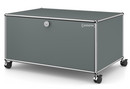 Das USM TV-Lowboard auf Rollen ist das kompakte Medienmöbel aus dem USM Möbelsystem.