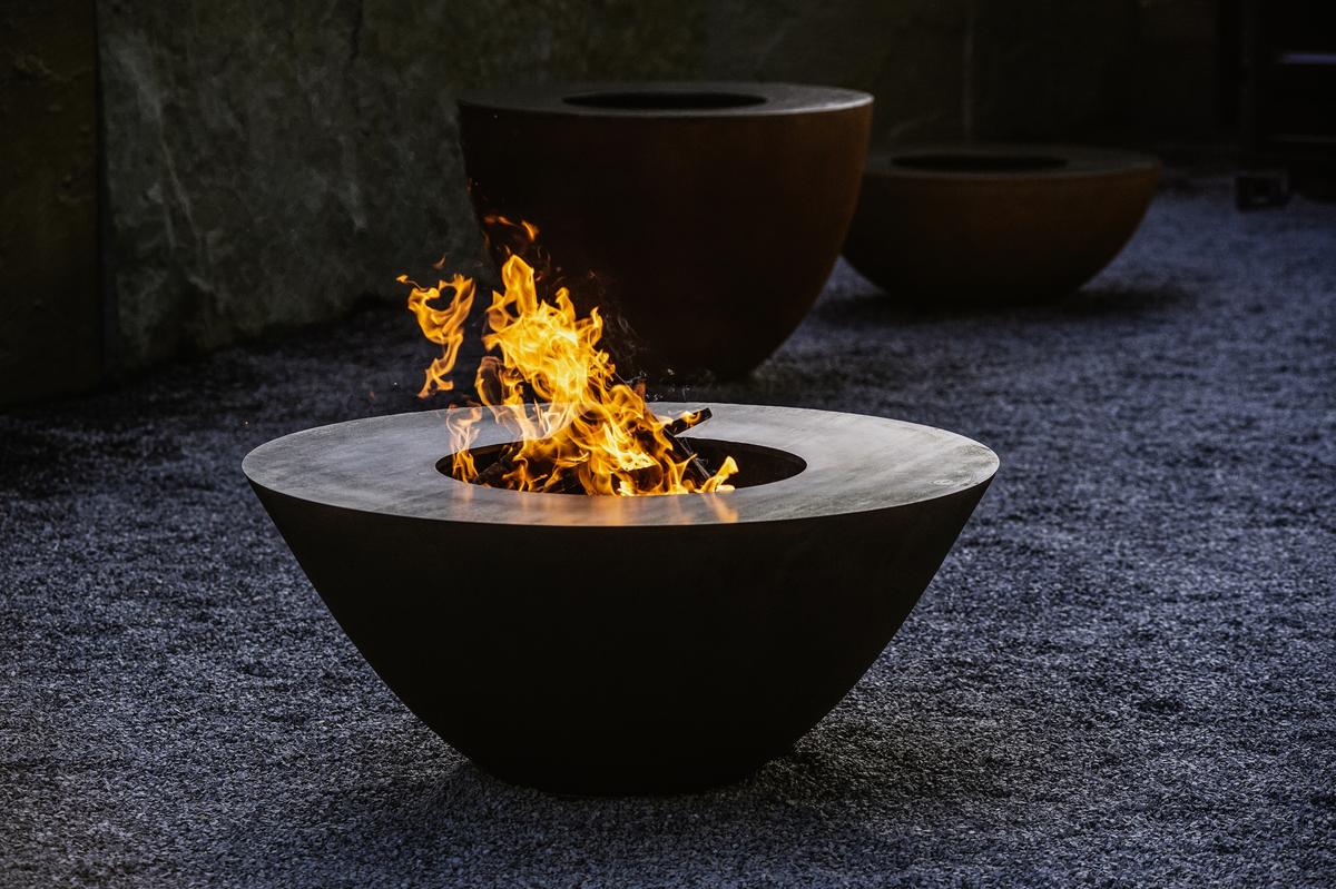Große, flache Feuerschalen erzeugen das klassische Lagerfeuer-Feeling, erfordern aber viel Platz und sollten idealerweise nur in ausreichend großen Gärten oder auf großzügig bemessenen Terrassen genutzt werden. In der Regel bestehen Feuerschalen aus einem Stück, sodass keine Glut auf den Boden fallen kann. Trotzdem muss der Untergrund natürlich feuerfest sein oder es sollte auf ausreichend hohe Beine geachtet werden. Bei Balkonen und Terrassen mit empfindlichen Böden ist besondere Vorsicht geboten.