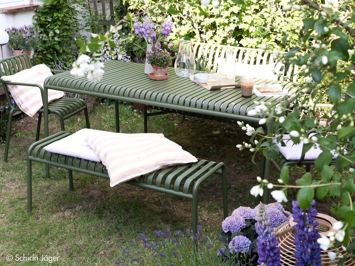 Muuto Linear Bank und Tisch für den Garten (aus Stahl)