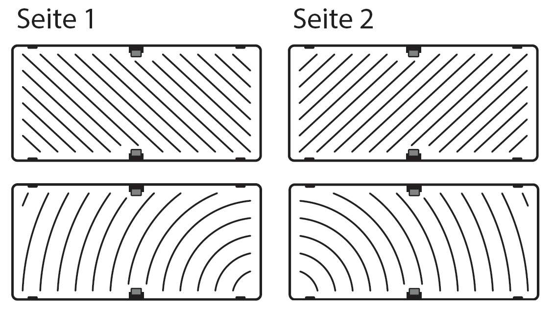 | Ausführungen | Wahlweise mit beidseitig gleichem diagonalem oder rund gerilltem Muster erhältlich![]() |