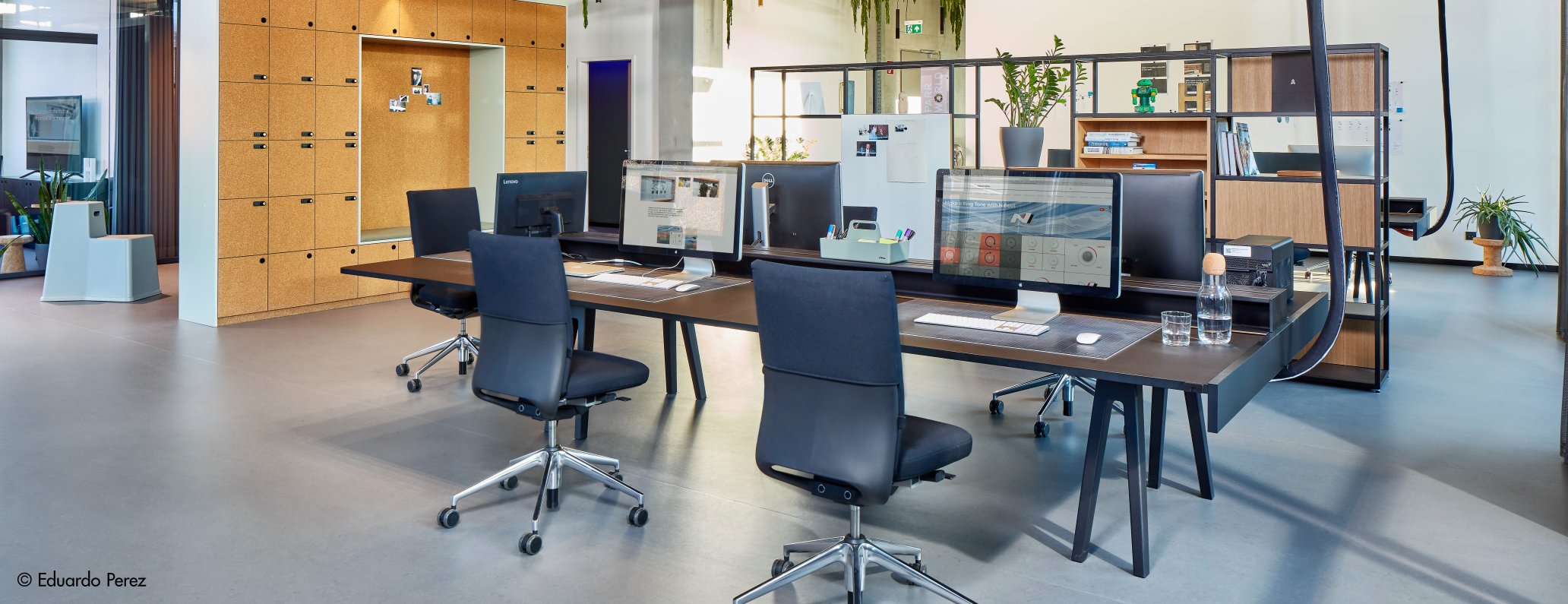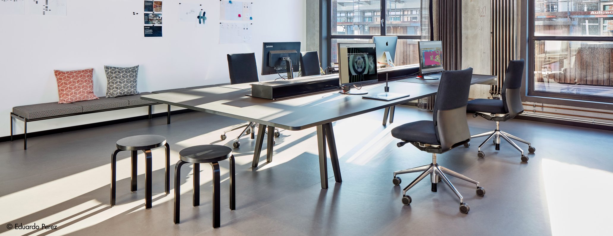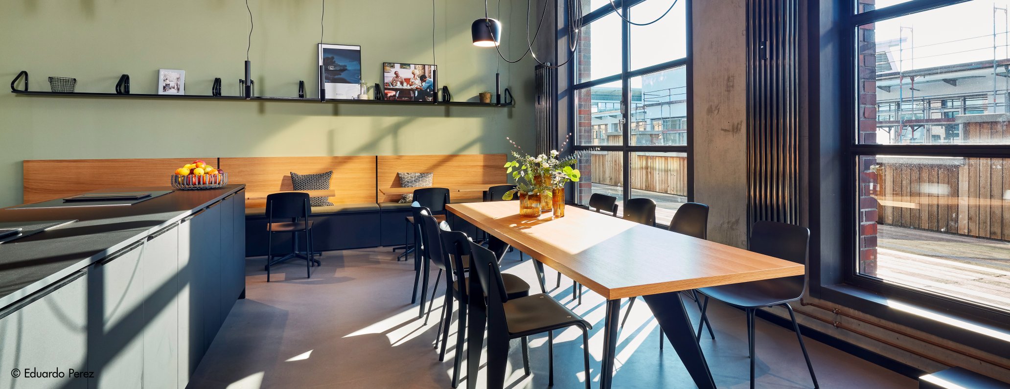In Strategieworkshops wurden zusammen mit Vitra und smow die Bedürfnisse der Agentur und der Mitarbeiter herausgearbeitet. Das Ergebnis war ein passendes Raumkonzept, welches die verschiedenen Arbeitsplatztypen und Workflows der Agentur berücksichtigt. Ein auf die Herren der Schöpfung abgestimmtes Farb-, Akustik- und Beleuchtungskonzept ergänzte die funktionale Möblierung der Arbeitsplätze, Meeting Points und Labs. Das Herzstück der Agentur bildet die großzügige und mit modernsten Geräten ausgestattete Küche, in der jeden Tag gemeinsam gekocht wird. Flexible Bereiche innerhalb des Büros tragen zukünftigem Wachstum Rechnung und werden heute bereits als vermietete Co-Working-Space genutzt.