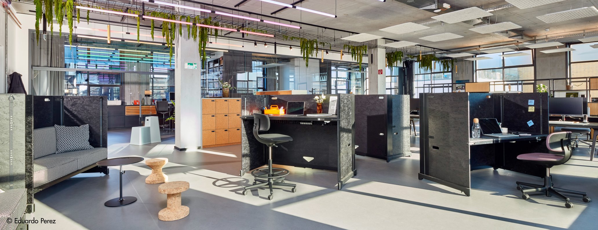 Die Frankfurter Digitalagentur Herren der Schöpfung bezieht mit ihrem neuen Büro auf dem Union Gelände direkt an der Hanauer Landstraße eine attraktive Location im Raw Industrial Style mit hellen, offenen Räumen und einer großen Dachterrasse. Das realisierte Raumkonzept stellt eine zeitgemäße Mischform aus Peer-Hubs für den kreativen Austausch und Think Tanks für konzentrierte Projektarbeit dar. Die in den letzten Jahren stark gewachsene Agentur hat die Mitarbeiter bei der Gestaltung des Layouts aktiv einbezogen und so ein Büro der Zukunft geschaffen – ein Office der Schöpfung.
