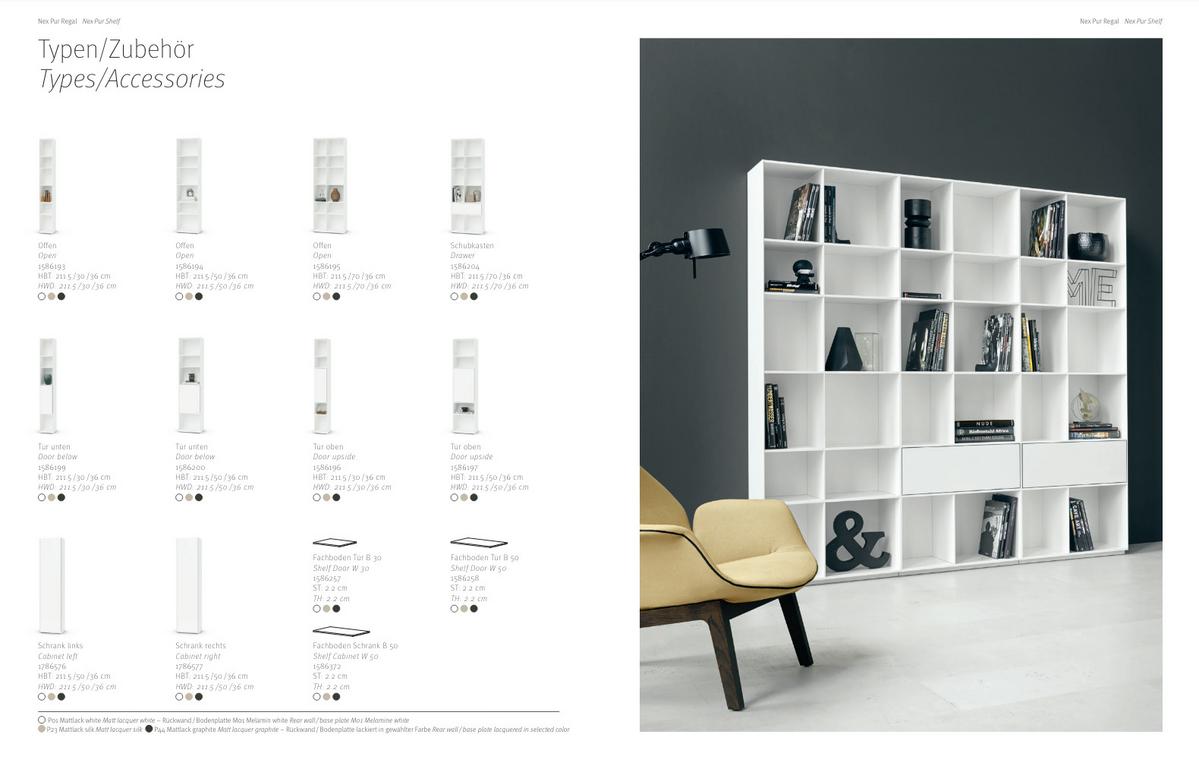 Die Regale der Nex Pur Reihe von Piure bringen Eleganz und Funktionalität in Wohn- und Geschäftsumgebungen. Ihr filigranes und minimalistisches Design harmoniert perfekt mit ihrer Robustheit und Vielseitigkeit. Dank der Option, verschiedene Module zu kombinieren, können maßgeschneiderte Stauraumlösungen für jede Anforderung geschaffen werden. Das Nex Pur Regal mit Tür bietet nicht nur zahlreiche offene Fächer, sondern auch einen diskreten Stauraum für Gegenstände, die nicht offen präsentiert werden sollen.