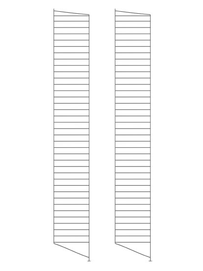 Grundlage jeder String Konfiguration sind die Seitenwände. Wählen Sie Boden- oder Wandleitern in unterschiedlichen Größen und Farbvarianten und ergänzen Sie die passenden Fachböden. Viele weitere Elemente, wie der Hängeschrank mit Schiebetüren oder Zubehör wie Haken oder eine Kleiderstange, runden das String Regal ab und machen es zu einem universellen, aber individuellen Möbel für kleine und große Wände in Wohn-, Arbeits- oder Kinderzimmer.