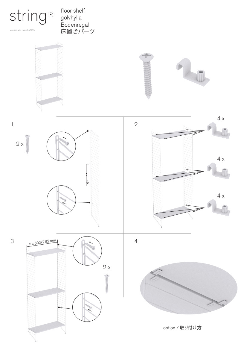 | Zertifikate & Nachhaltigkeit | Die Maße des String-Regals sind seit 1949 unverändert, sodass jedes Regal unabhängig vom Alter immer wieder einfach umgestaltet und erweitert werden kann. |