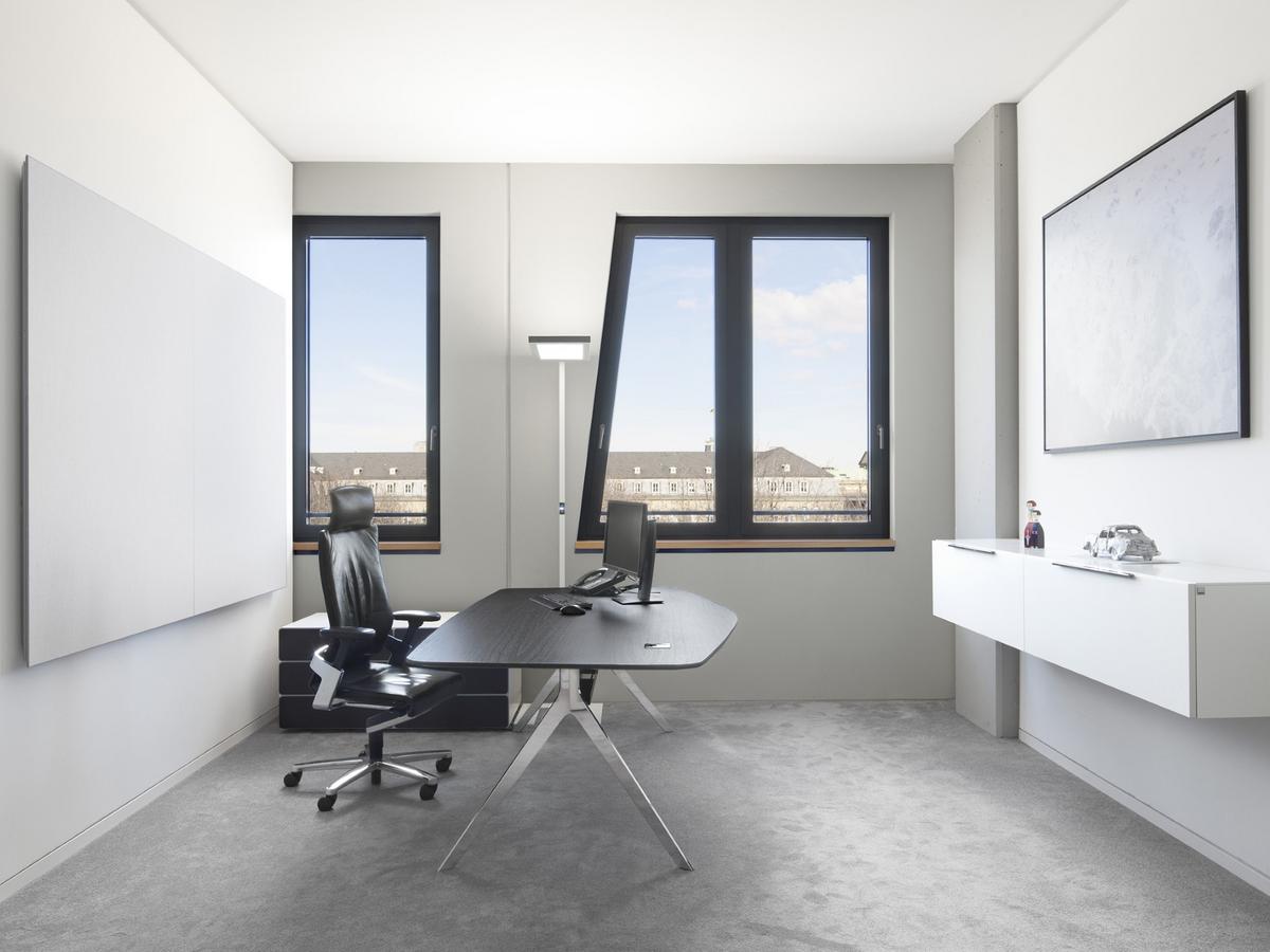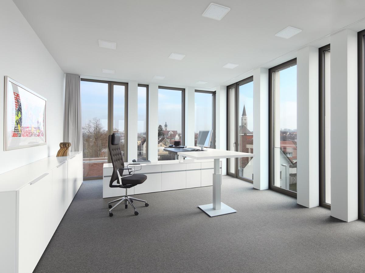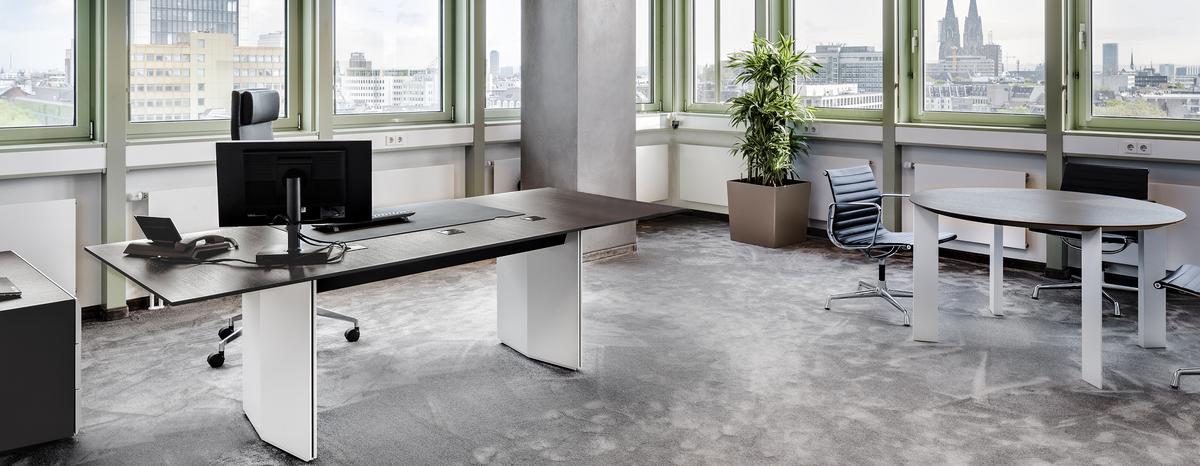 Büro mit dem höhenverstellbaren Arbeitstisch Pace und Besprechungstisch Paper (Bild © Stefan Marquardt)