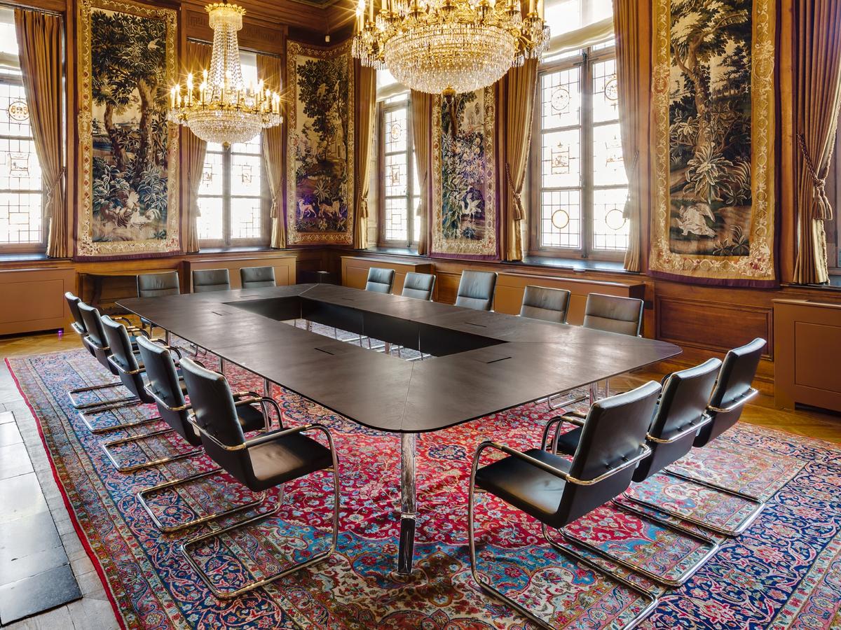 Auch im historischen Konferenzsaal passen Renz Konferenzmöbel wie das Talk Tischsystem optimal (Bild © Stefan Marquardt)