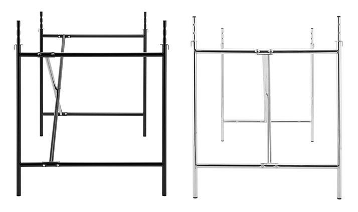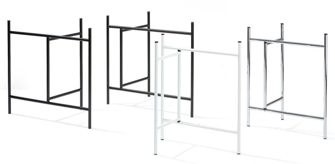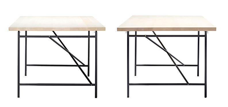 Mit den Eiermann Gestellen 1, 2 und dem Eiermann 3 Tischbock sowie den verschiedenen Kombinationen aus Gestell und Tischplatte liefert Richard Lampert eine Reihe von Arbeits- und Esstischen, die in funktionaler Hinsicht ganz verschiedenen Anforderungen gerecht werden. Während das Eiermann Tischgestell 1 – das eigentliche Original – ästhetisch immer noch am ausgereiftesten erscheint, erweist sich das Eiermann Tischgestell 2 als praktischer. Das Eiermann 1 Gestell ist zwar mittlerweile auch zerlegbar und auf Wunsch mit nach hinten versetzten Streben erhältlich. Dennoch bieten die senkrechten Verstrebungen des Eiermann Tischgestells 2 noch mehr Komfort: je nachdem, ob mittig oder versetzt platziert, bietet das Tischgestell 2 maximale Beinfreiheit von einer Seite, oder kann von beiden Seiten genutzt werden. Der Eiermann Kinderschreibtisch wächst wiederum dank der Verlängerungsstäbe mit den Kindern mit und ist im Gegensatz zu den anderen Eiermann Tischen mit einer fest verschraubten Tischplatte versehen. Am Eiermann 1 Konferenztisch haben Dank der quadratischen Form nicht nur mehr Leute Platz, es sitzen sich auch alle Beteiligten gleichberechtigt gegenüber. Neu in der Eiermann Familie ist der Eiermann 3 Tischbock. Entwickelt 2015 von Alexander Seifried in Anlehnung an die Eiermann Tischgestelle 1 und 2, ist der Eiermann 3 Tischbock nicht nur absolut flexibel einsetzbar und leicht zu verstauen, er liefert auch hinsichtlich der Tischplatten ganz neue Möglichkeiten: neben eckigen Tischplatten in diversen Größen kann der Eiermann 3 Tischbock auch mit runden Tischplatten kombiniert werden.