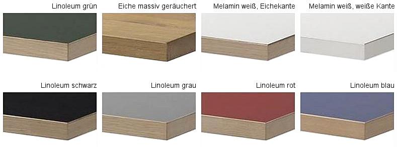 Egon Eiermann interessierte sich bei seinem Entwurf tatsächlich nur für die Konstruktion des Tischgestells. Was letztlich als Tischplatte zum Einsatz kam, blieb dem Nutzer selbst überlassen. Die Tischplatten sollten einfach lose auf die Eiermann Tischgestelle aufgelegt werden. Grundsätzlich sind der Kreativität bei der Wahl der Auflage auch heute keine Grenzen gesetzt - Eiermanns Studenten verwendeten sogar ausgediente Türblätter. Damit der Eiermann Tisch aber auch komplett zu haben ist, bietet Richard Lampert eine große Auswahl passender Tischplatten in diversen Größen an: Neben verschiedenfarbigen Melamin- und Linoleumbeschichtungen sind auch massive Tischplatten in Ahorn und Eiche erhältlich.