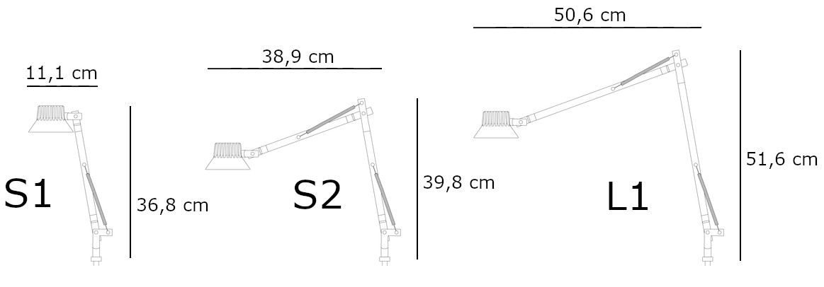 | Material | Lampenkopf und Scharniere: druckgegossenes Aluminium, pulverbeschichtet Schirm: Plastik Lampenarme: stranggepresstes Aluminium, pulverbeschichtet Fuß: Stahl Klemme: druckgegossenes Aluminium mit Stahlscharnier |